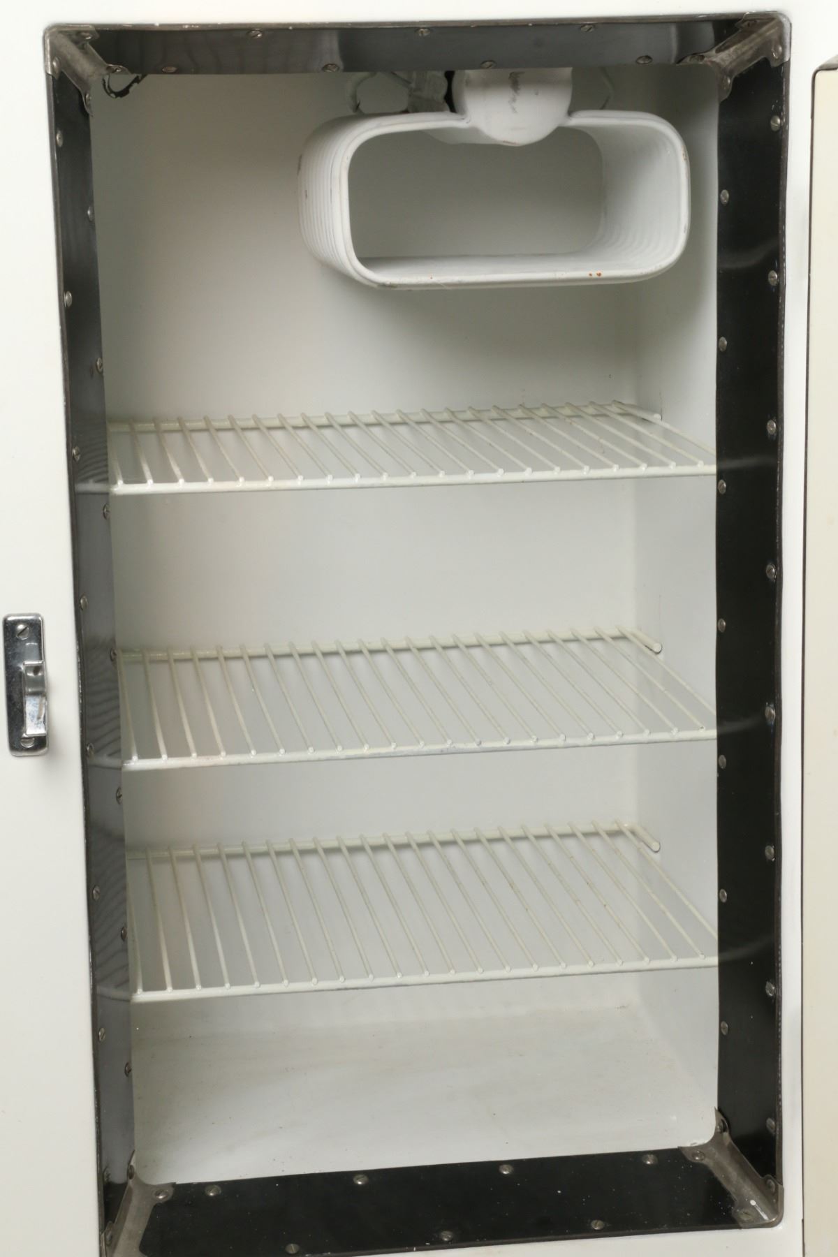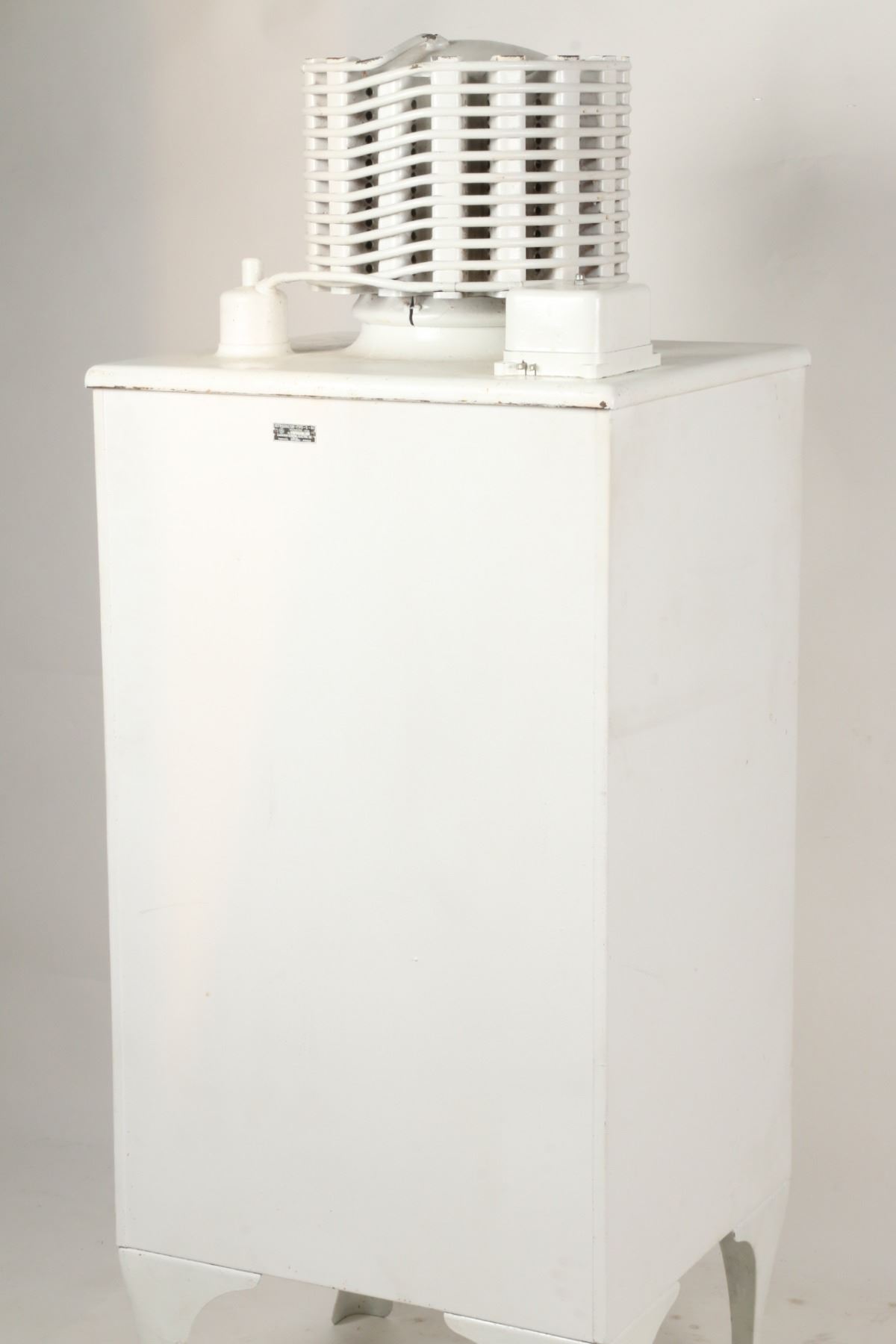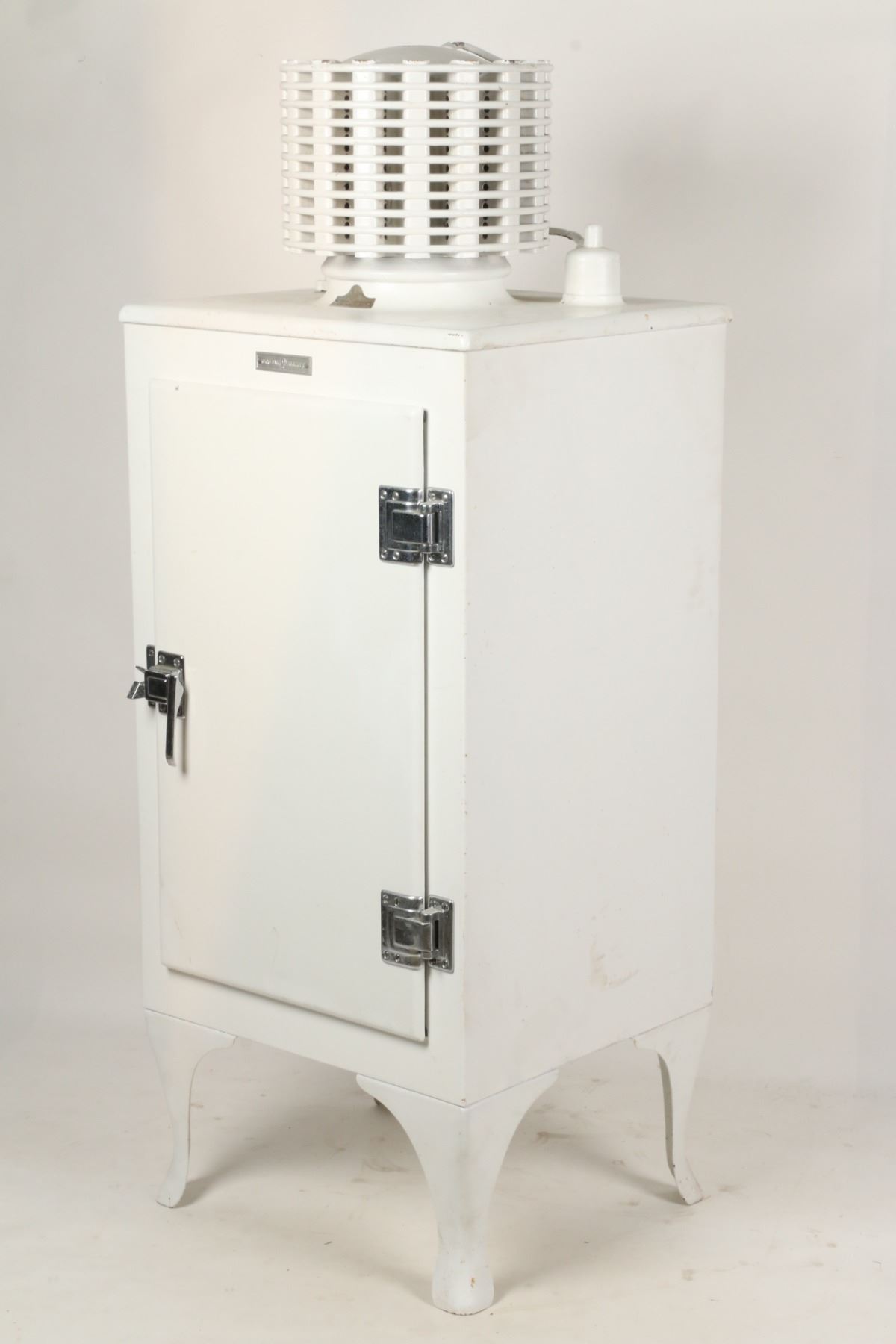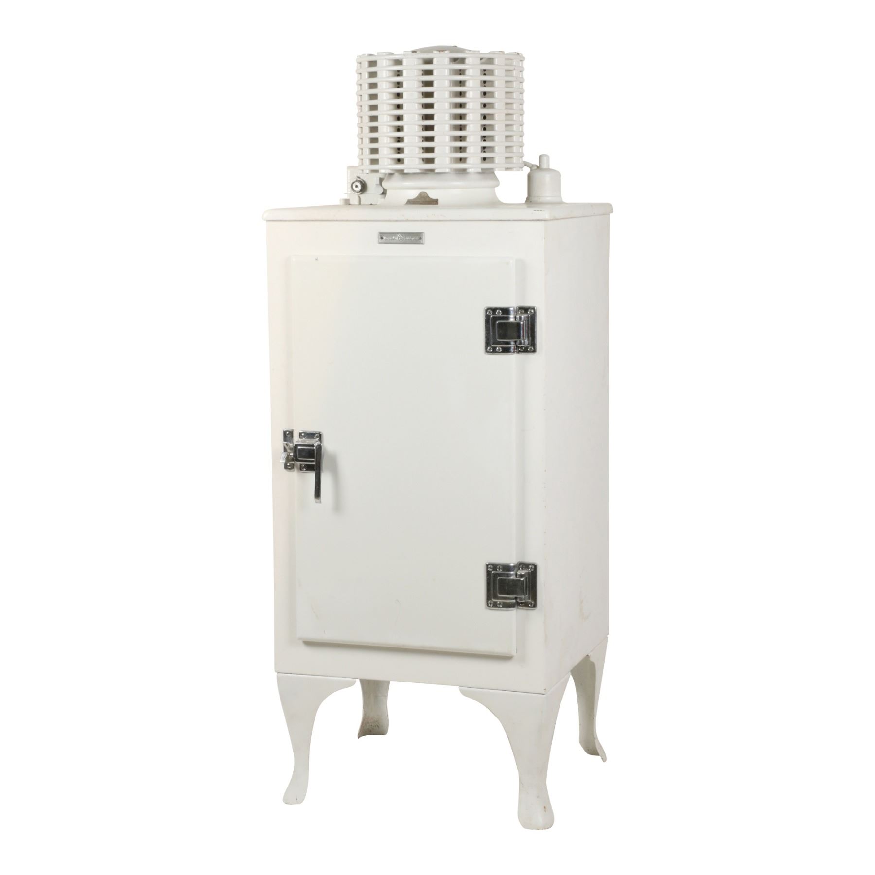 Canadian. Circa 1930. Marked, "Refrigerator-Type-S-44", "Canadian General Electric Co. Toronto Ontario Canada". 63" x 23.5" x 21". Re-painted. Original insulation replaced with modern materials. Functions properly. 110v standard plug. $800-1200.
