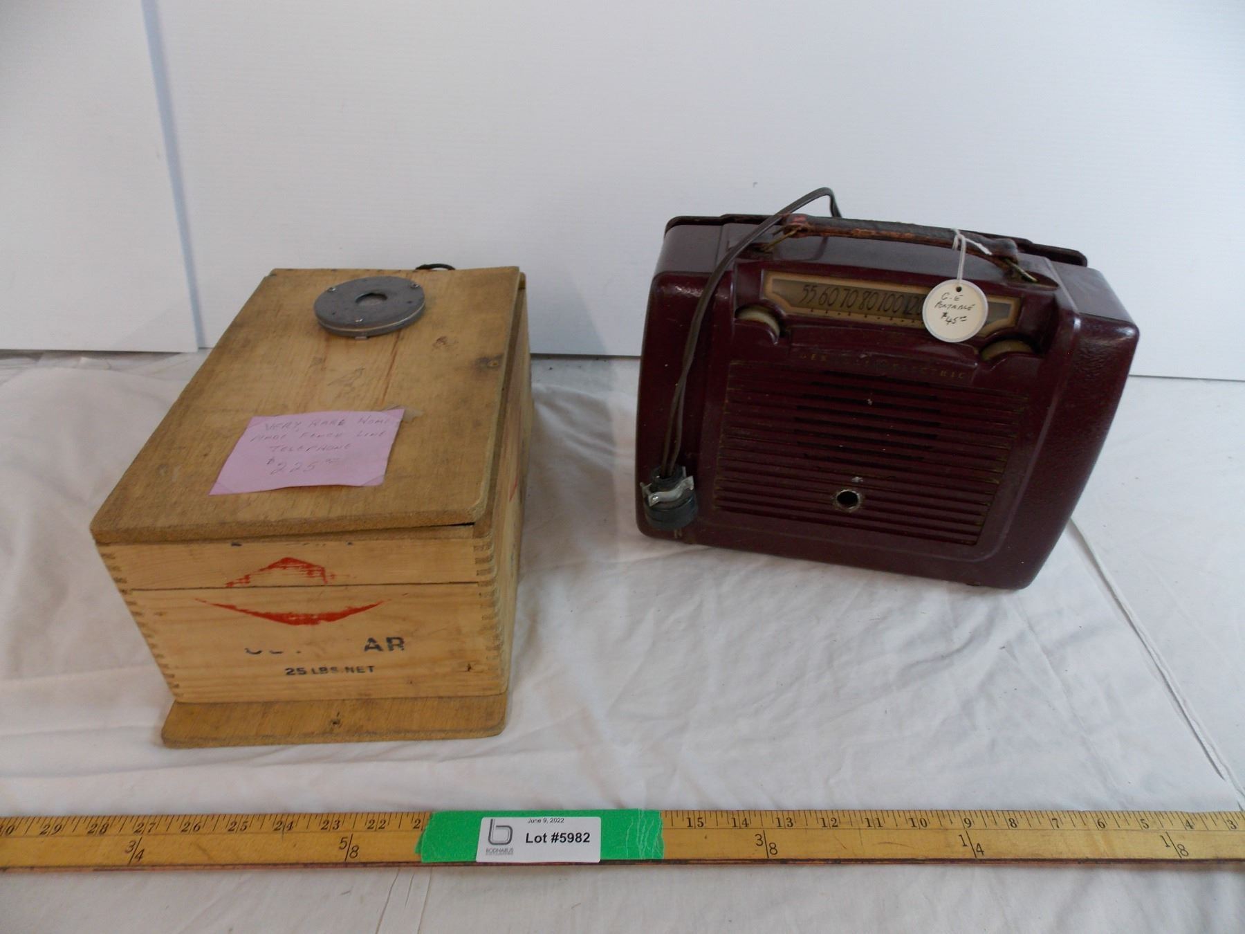 General Electric portable radio and homemade fence line telephone