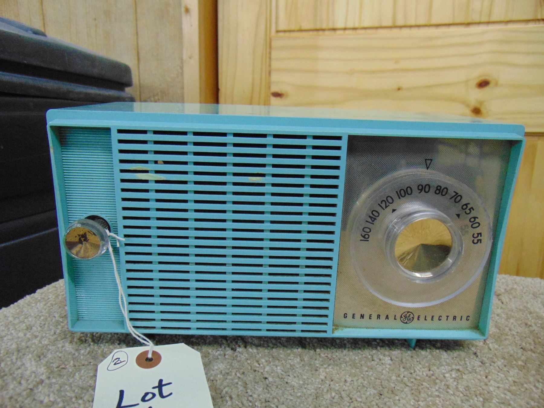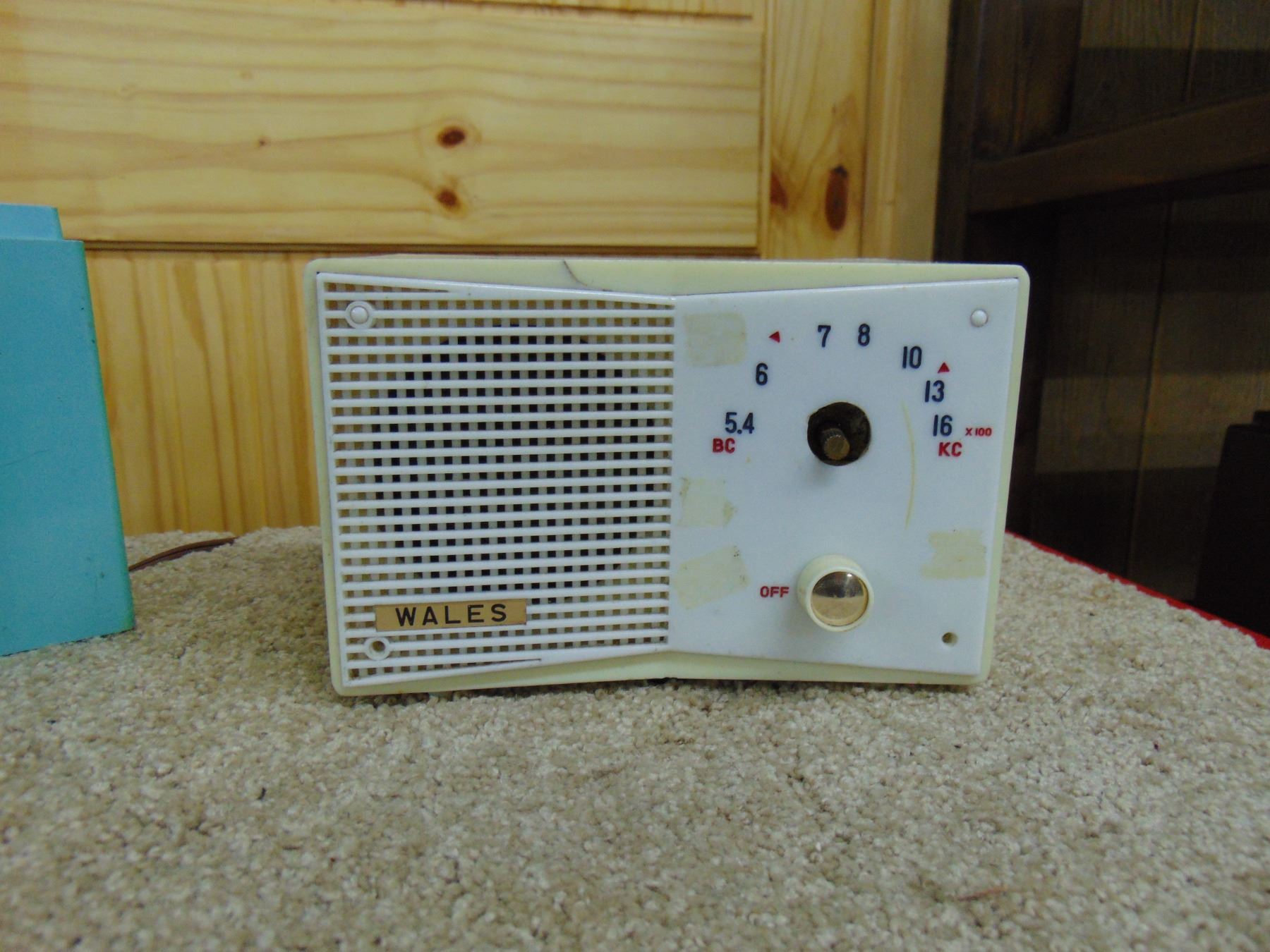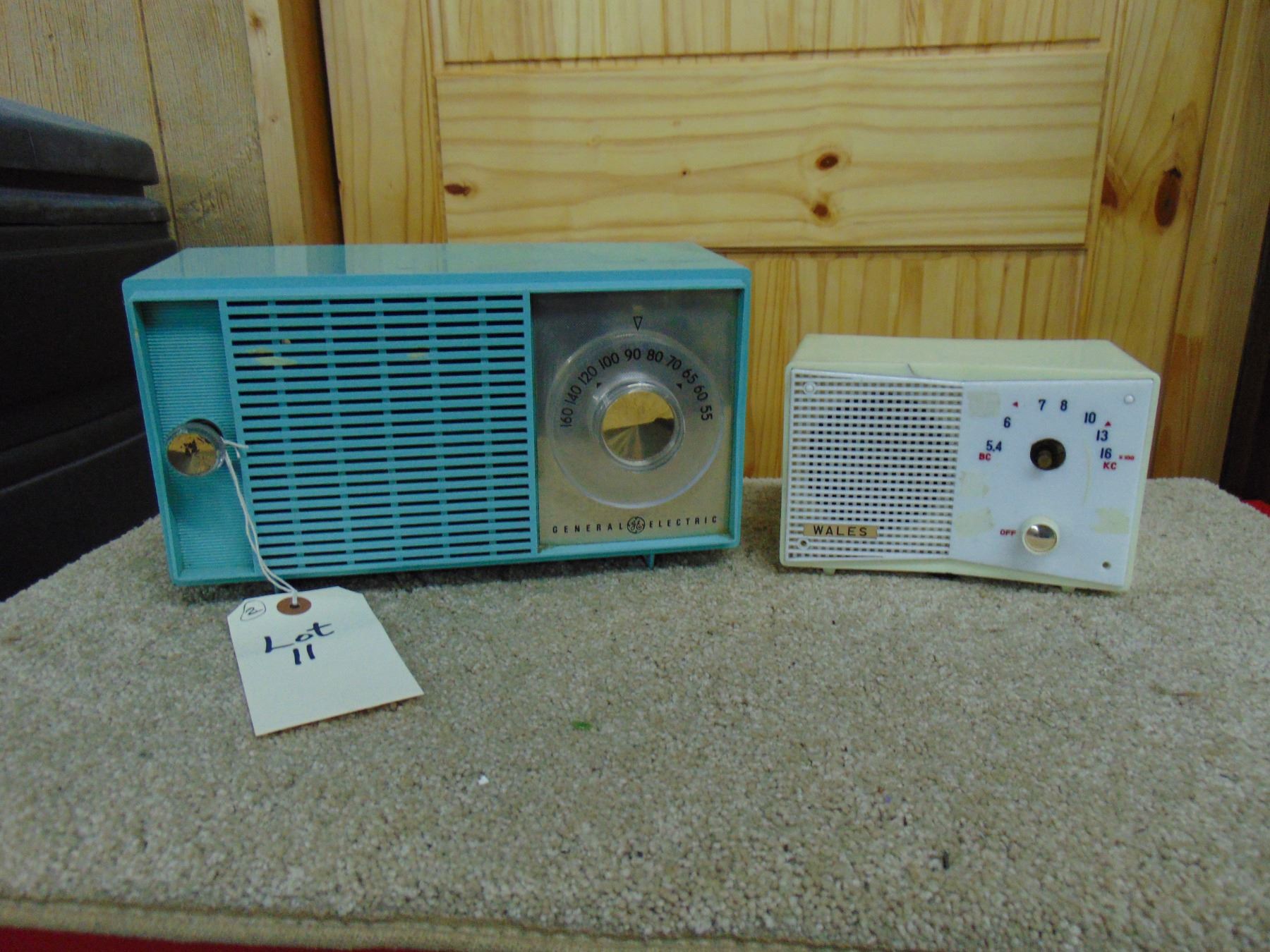 2 radios; General Electric blue table set, no cracks; ALSO, Wales small table set, crack on side and top, missing knob