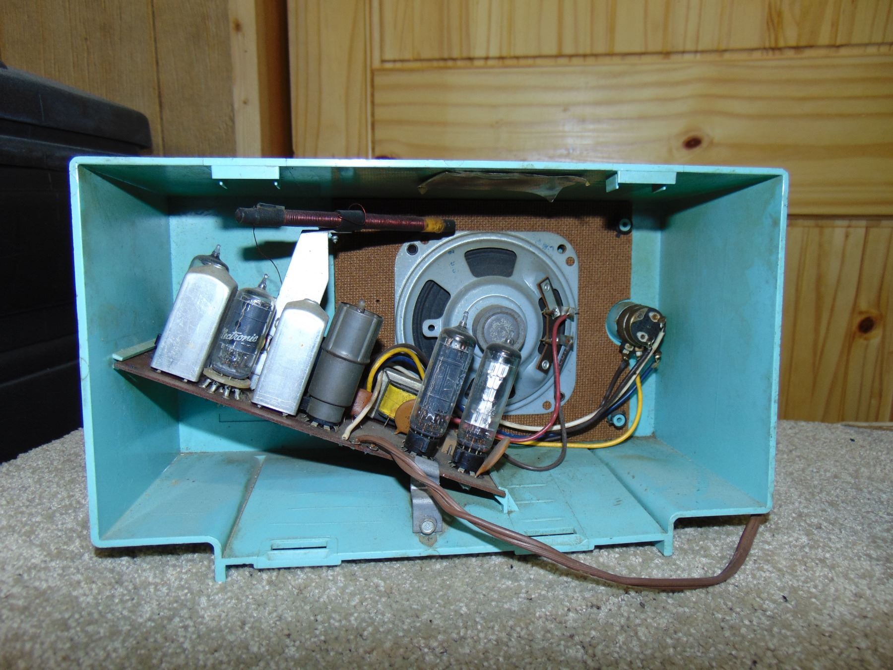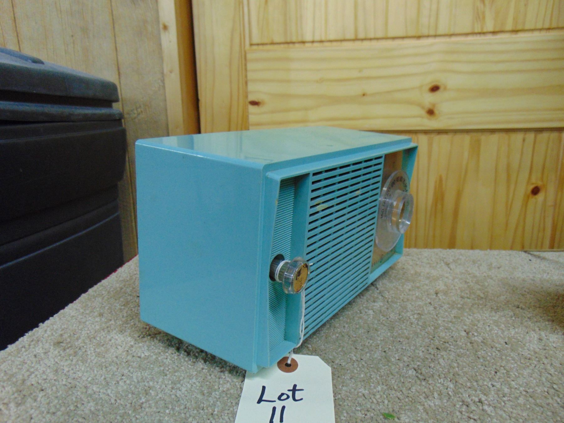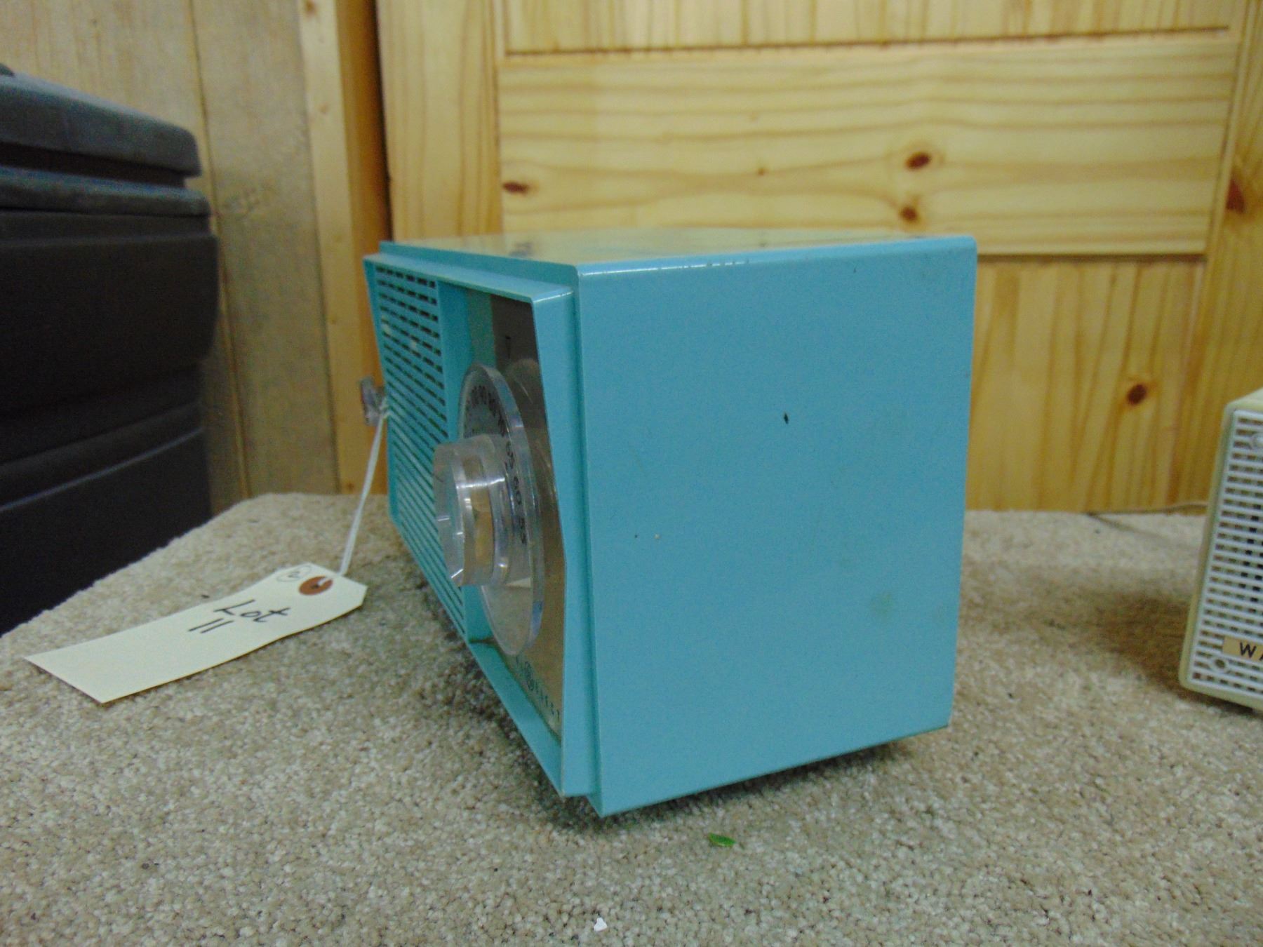 2 radios; General Electric blue table set, no cracks; ALSO, Wales small table set, crack on side and top, missing knob