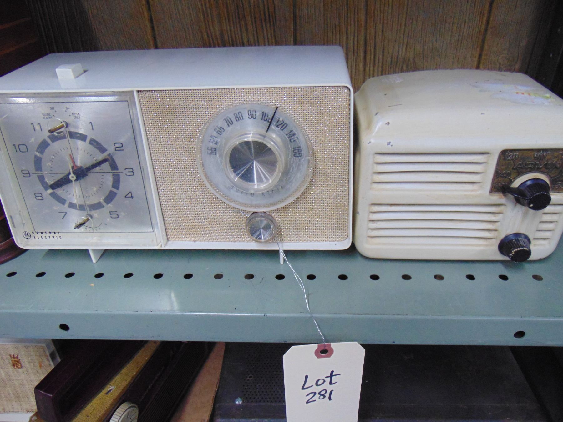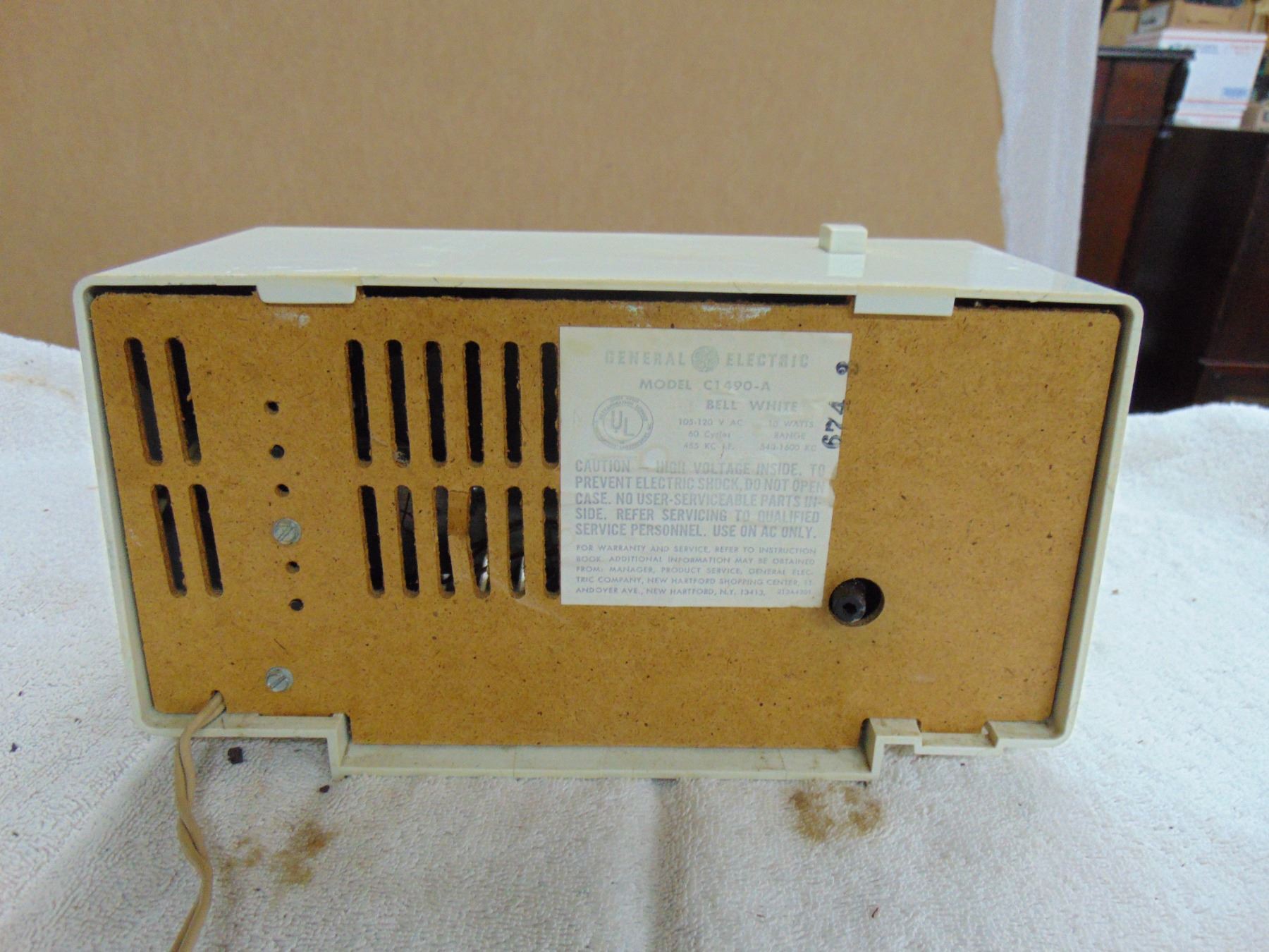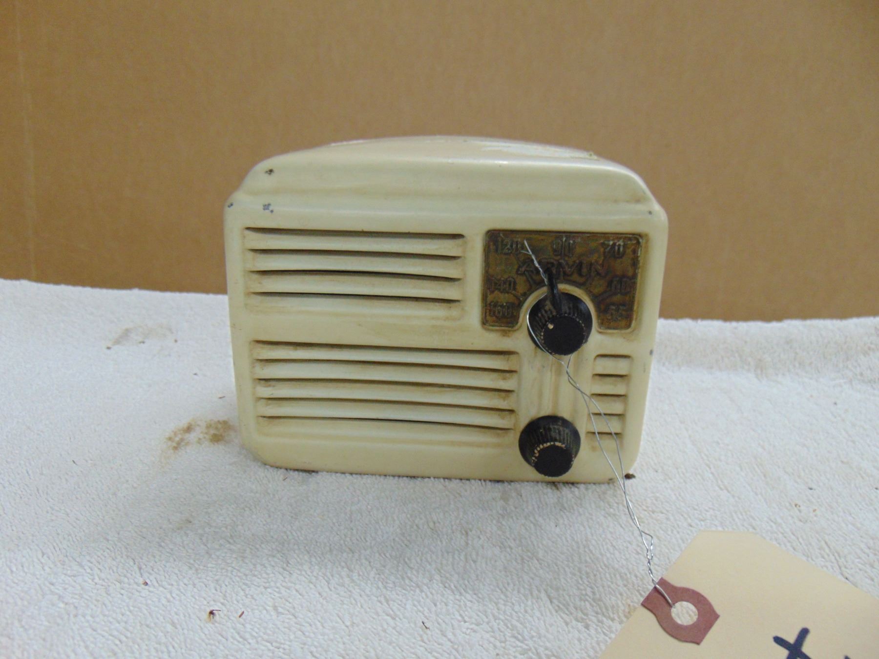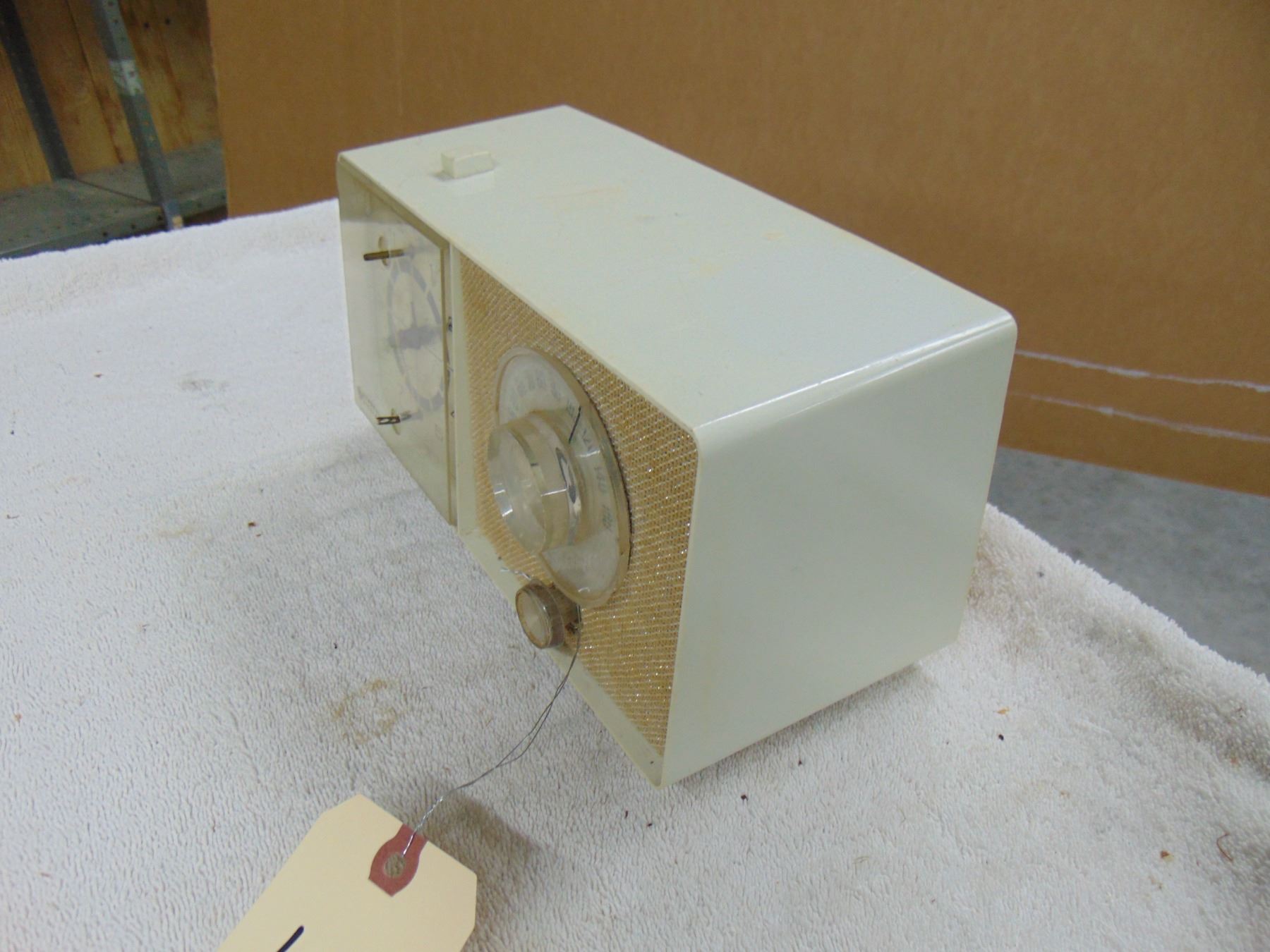 White plastic clock radio table set, model C1490-A, no cracks: ALSO, white metal Arvin, parts only (knobs, back, cabinet)