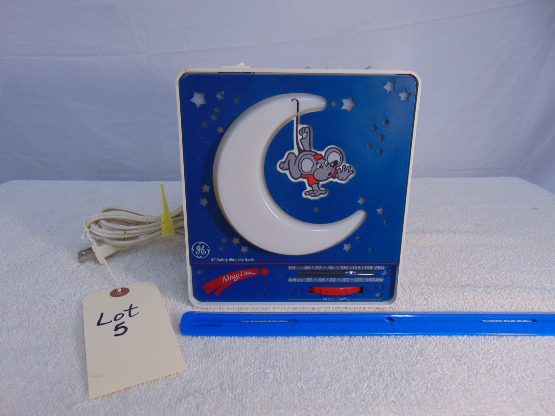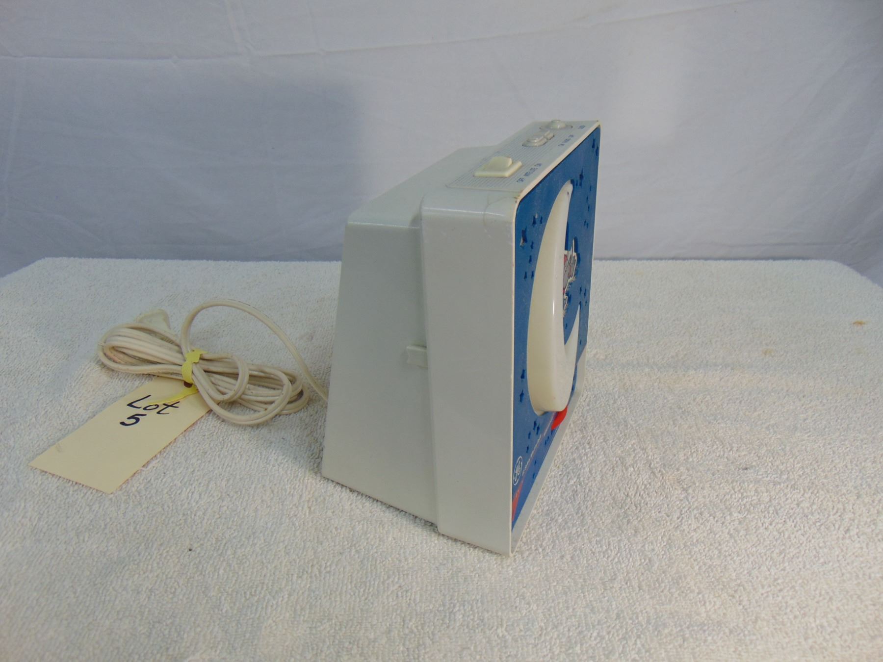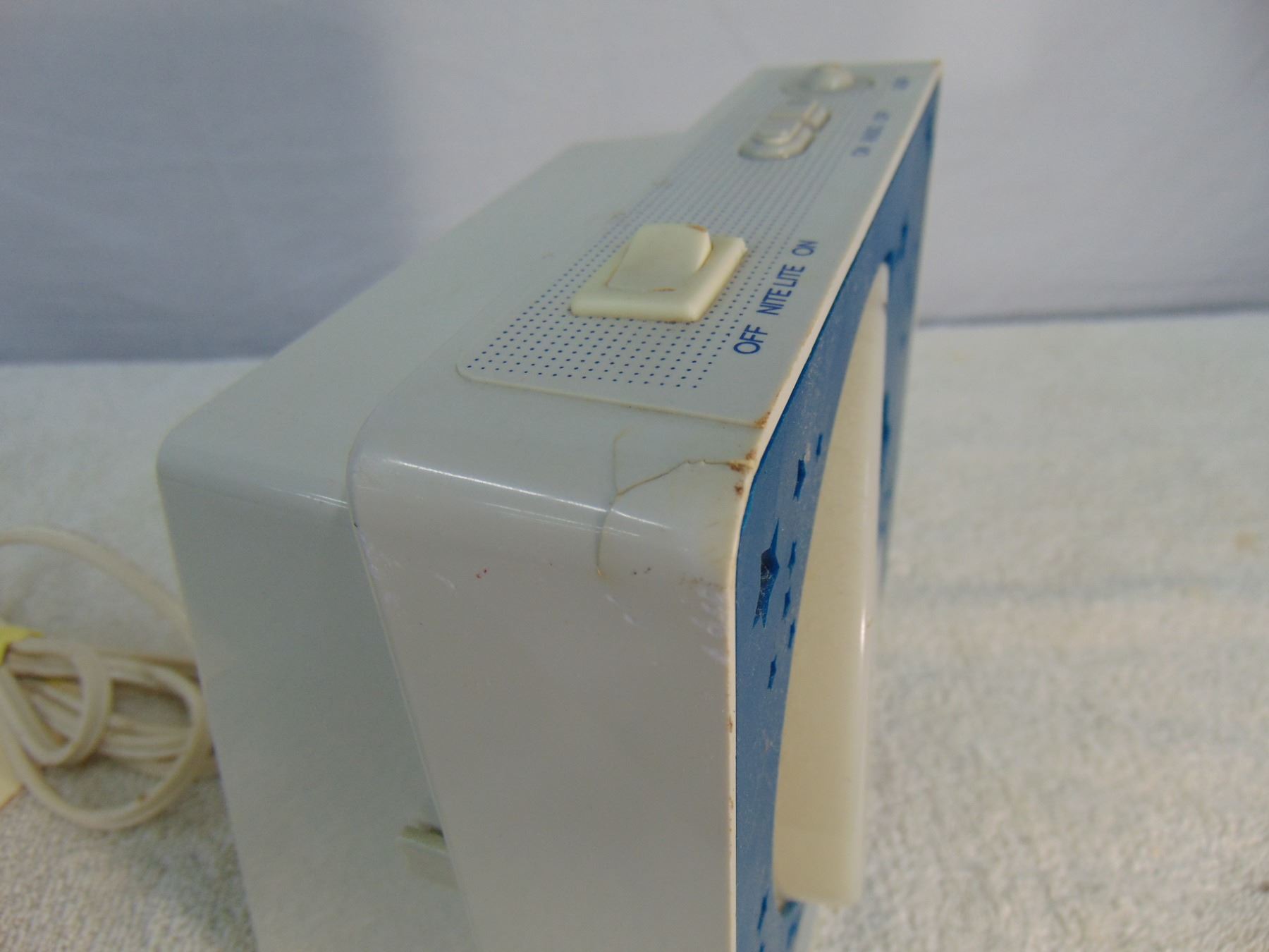 General Electric "Nitey Lite"; model 7-4111A; radio and nightlight works; cute!; repaired crack on top left hand corner