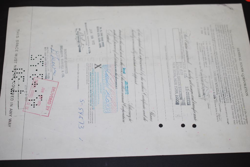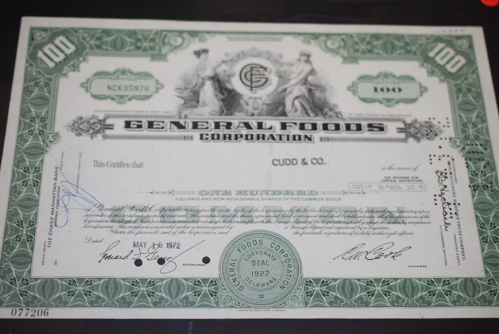 General Foods Corp. Stock Certificate Dated 1972; EST. $5-10