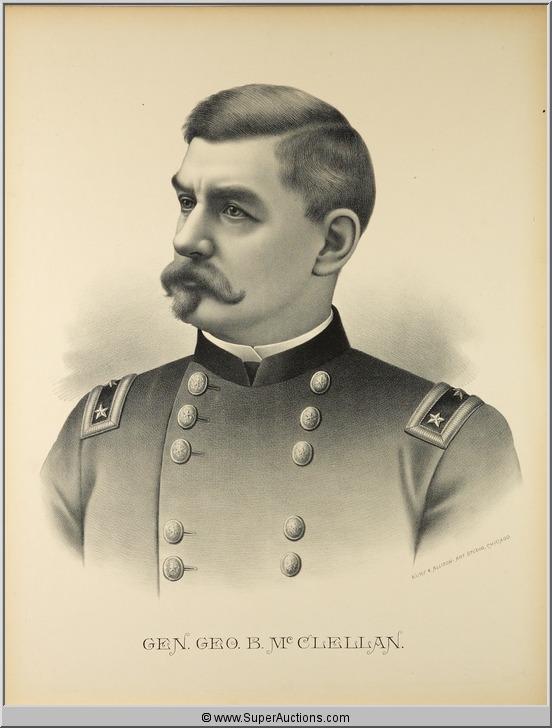 General George B. McClellan Historical Print / Kurz & Allison - Art Studio, Chicago / Bent Edges, Light Stains {21" L x 27" H}