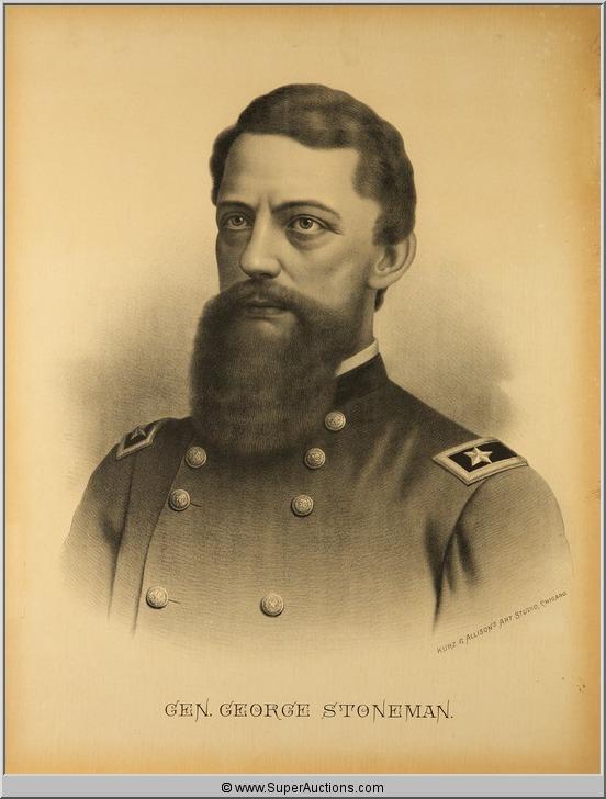 General George Stoneman Historical Print / Kurz & Allison - Art Studio, Chicago / Bent Edges, Stains {21 1/2" L x 27 5/8" H}