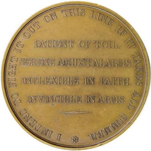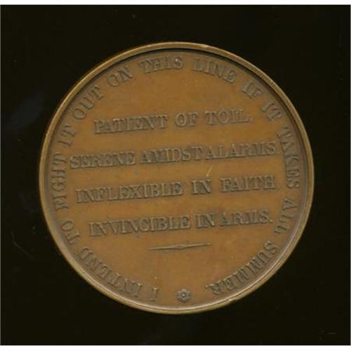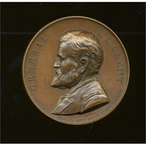 <B>1868 General Grant Presidential Medal MS63 NGC.</B></I> Bronze, 60.3 mm, 121.4 gm. Large medal promoting General Ulysses S. Grant for president. Dies by Hugues Bovy. Obverse bust left, legend around GENERAL U.S. GRANT (1868) HUGUES BOVY FECIT GENEVE (SUISSE). Reverse legend around I INTEND TO FIGHT IT OUT ON THIS LINE IF IT TAKES ALL SUMMER, in center PATIENT OF TOIL / SERENE AMIDST ALARMS / INFLEXIBLE IN FAITH / INVINCIBLE IN ARMS. A nice prooflike medium-brown example of this piece, graded MS63 by NGC. Comes with NGC Photo Certificate. An example from a Stack's 1991 sale (lot 210) brought $300.<BR><BR><b>Shipping:</b> Coins & Currency (<a target="_blank" href="http://www.heritageauctions.com/common/shipping.php">view shipping information</a>)
