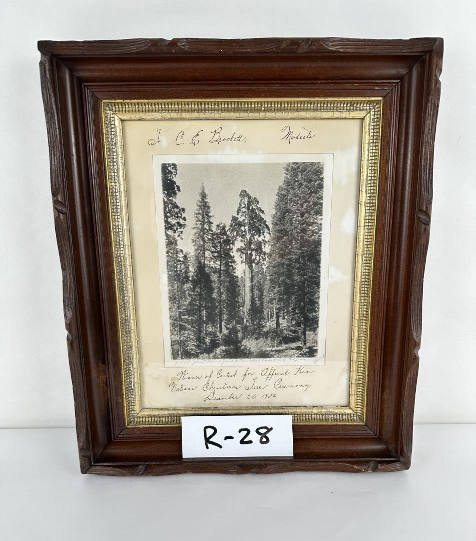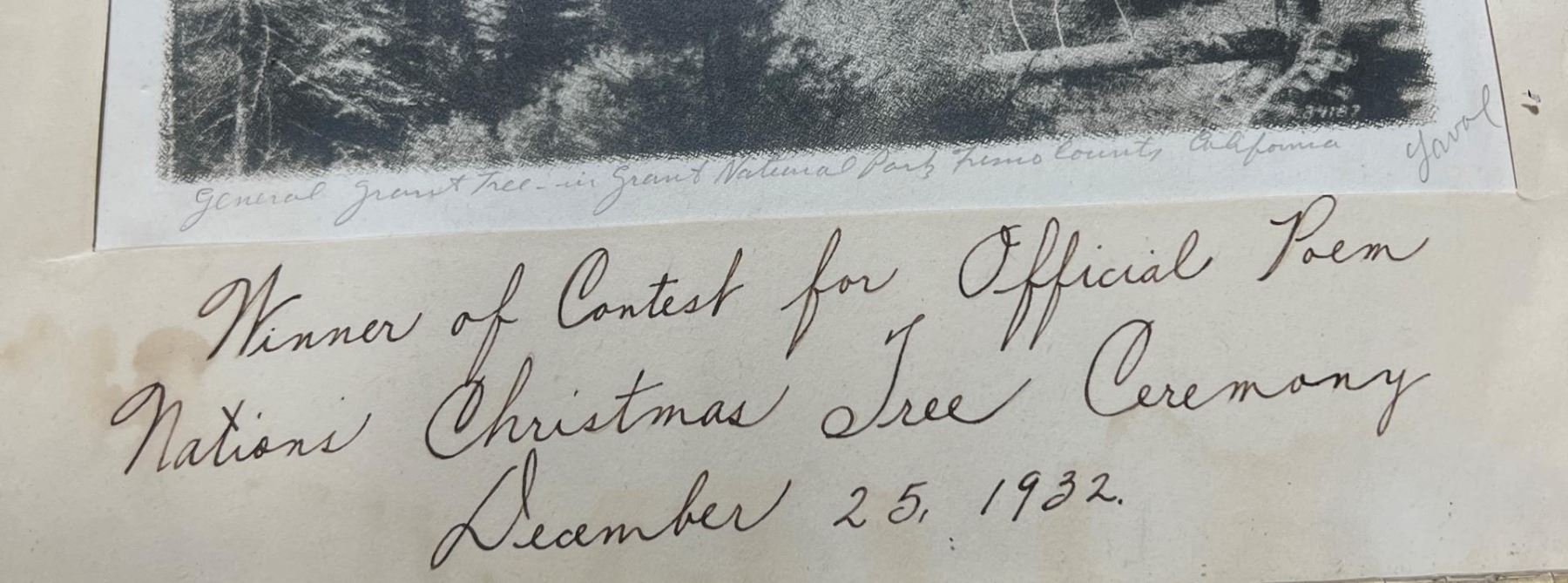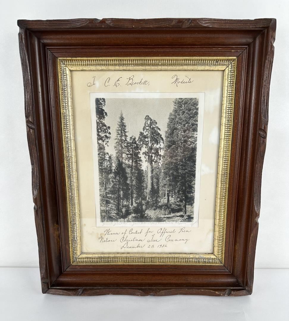 16" by 19" framed. Inscribed C.E. Brockett Modesto. Winner of Contest for Official Poem. Nations Christmas Tree Ceremony, December 25 1932.