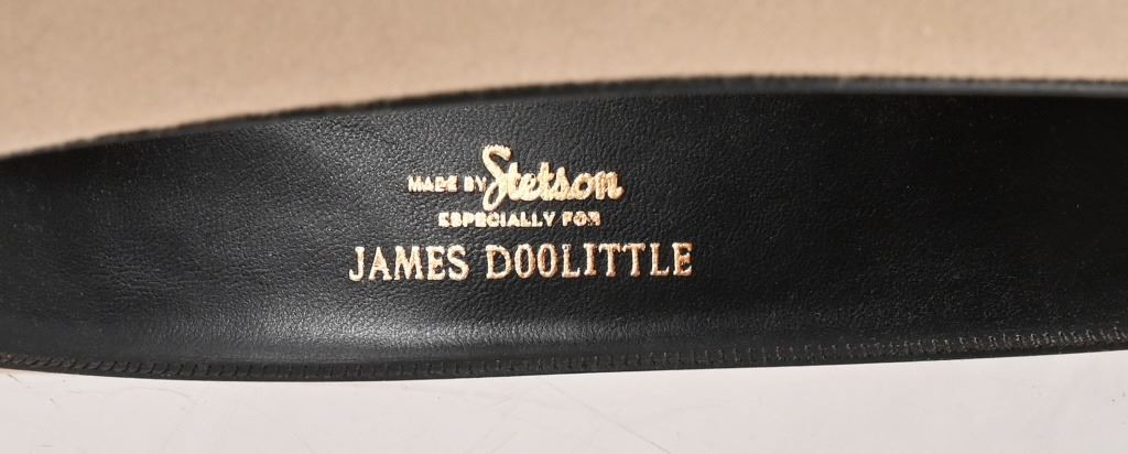 Presentation Stetson Cowboy Hat. Inscribed in gold inside "Made especially for James Doolittle". James Harold Doolittle (December 14, 1896 – September 27, 1993) was an American military general and aviation pioneer who received the Medal of Honor for his daring raid on Japan during World War II, known as the Doolittle Raid in his honor.