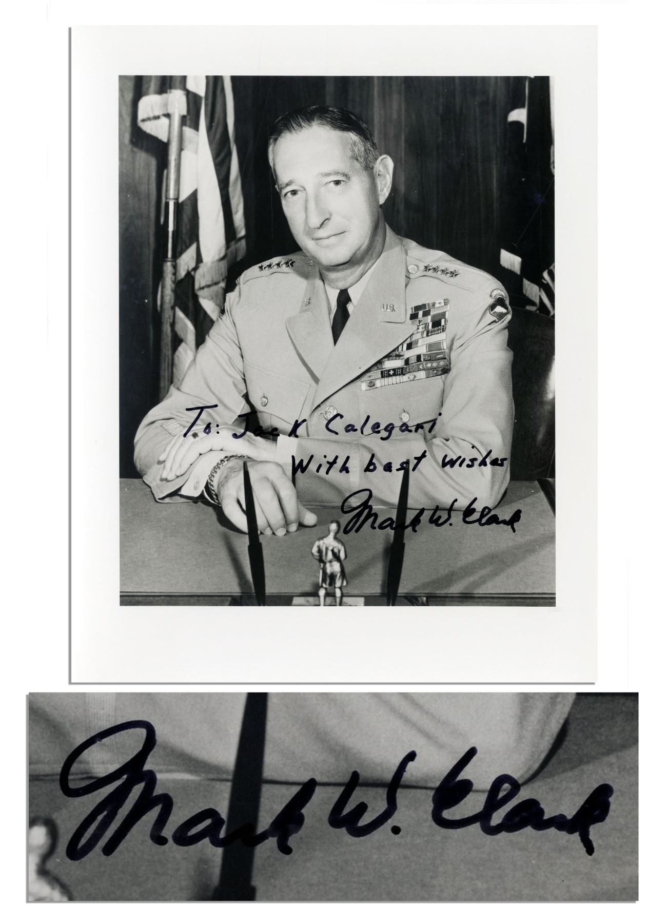 General Mark W. Clark 8'' x 10'' Signed Photo -- ''To: Jack K Calegari / With best wishes / Mark W. Clark'' -- Fine