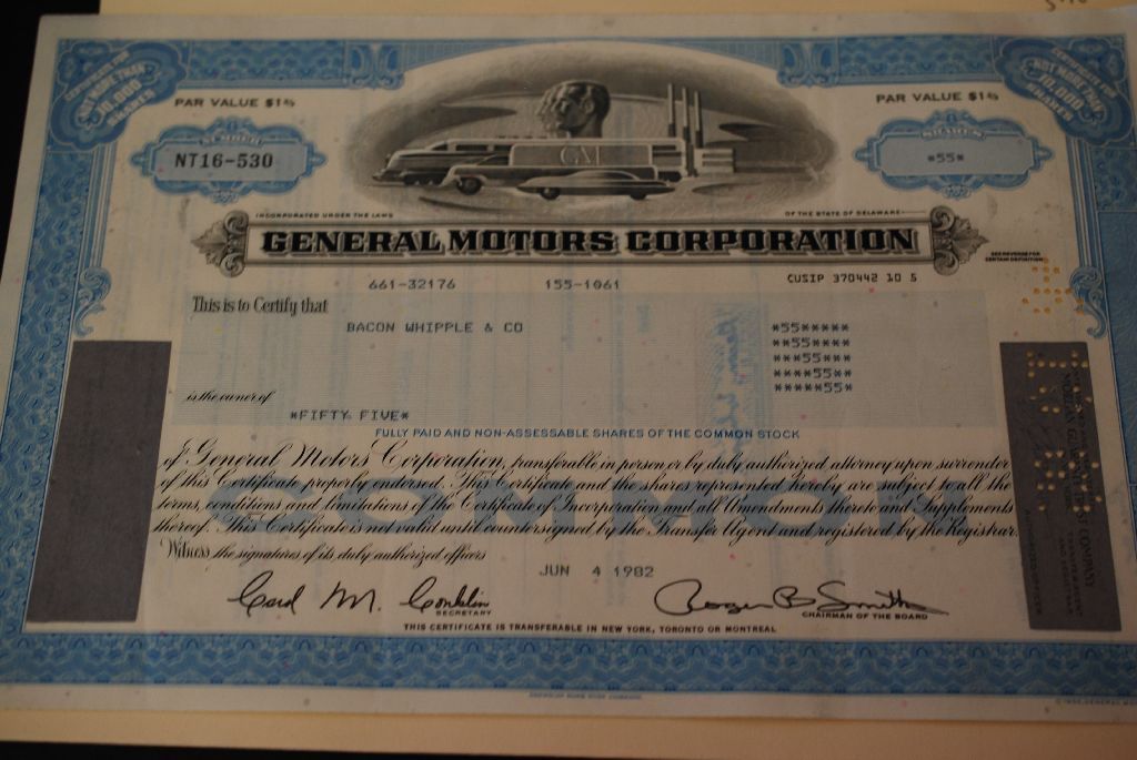 General Motors Corp. Stock Certificate Dated 1982; EST. $5-10