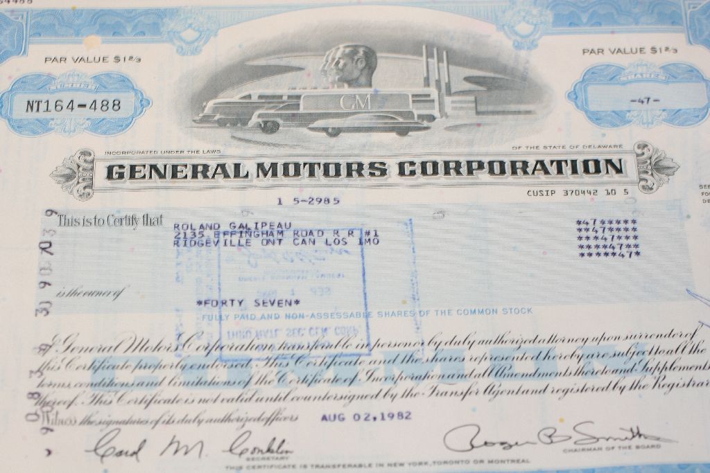 General Motors Corp. Stock Certificate Dated 1982