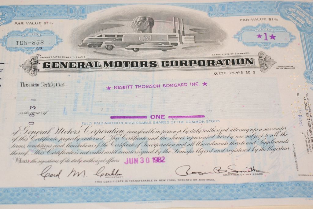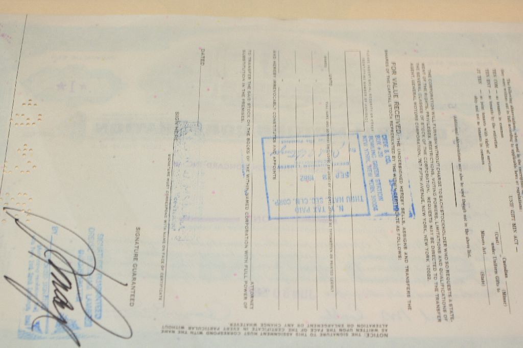 General Motors Corp. Stock Certificate Dated 1982