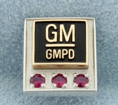 In 10K yellow and white gold, the pin contains three 2mm round lab rubies, they have excellent color and clarity. It is 1/2 inch long. Excellent collector's piece. 2.2g