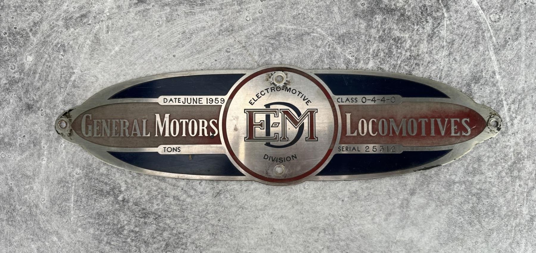 Rare Railroad Piece. June 1959, Class 0-4-4-0. Serial 25312. This plate belonged to Milwaukee Road GP-9 #317. I have inserted a photo of the engine as shown. George (Jay) Lentzner Collection.
