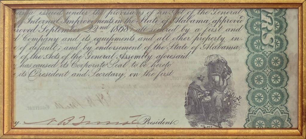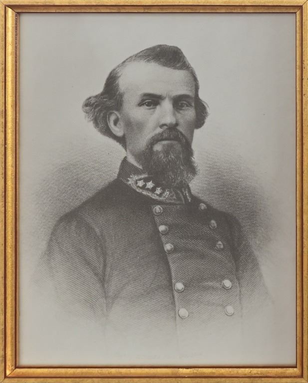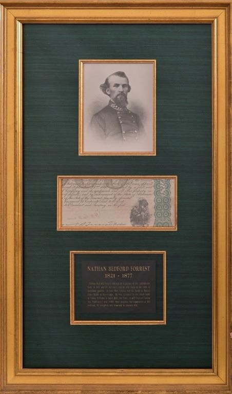 Signed and framed document with portrait photo, signed by Nathan Bedford Forrest. Document is dated September 22, 1868. Frame measures 15.75" x 26"