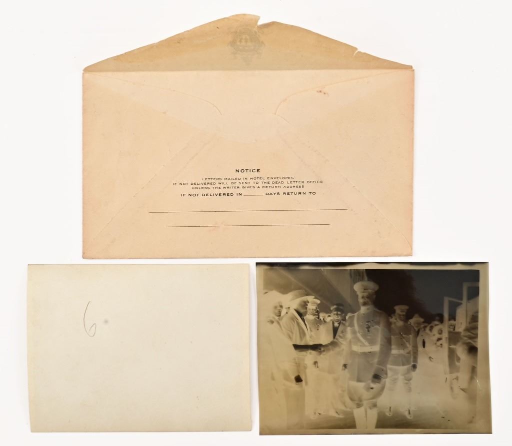 Period envelope from The St. Charles Hotel, New Orleans, Louisiana. Labeled "General Pershing Film, New Orleans La. American Legion national Convention, 1922. Image size 3.5" x 4.5"