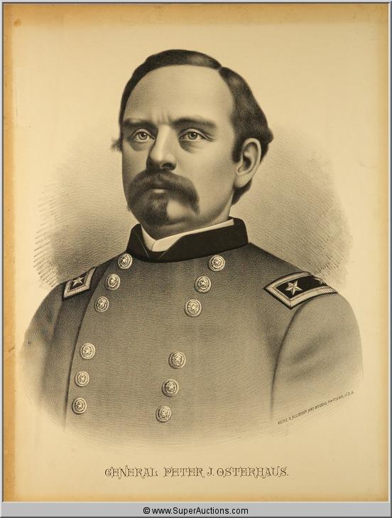 General Peter Osterhaus Historical Print / Kurz & Allison - Art Studio, Chicago / Bent Edges, Staining around perimeter {21" L x 27" H}