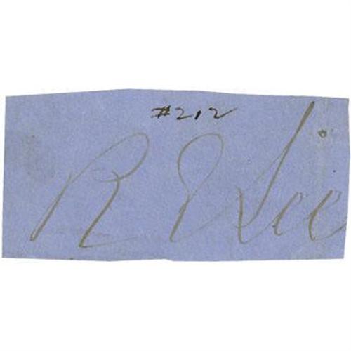 <B>General Robert E. Lee Signature</B></I> "<I>R E Lee</B></I>" clipped from a document or letter, 2" x 1", laid down to a card and then to an album page. Lee, although fighting against superior forces, managed a number of victories during the Civil War and is one of the true icons of that war. Afterwards, he urged reconciliation and spent the rest of his life as president of Washington College (now Washington and Lee University) in his beloved Virginia. Very good condition with the ink notation "#212" written in another hand just above his signature. From the Henry E. Luhrs Collection. Accompanied by LOA from PSA/DNA.