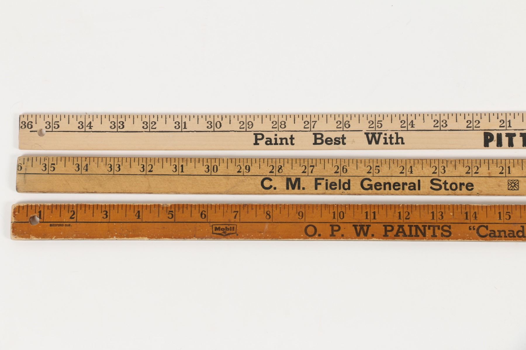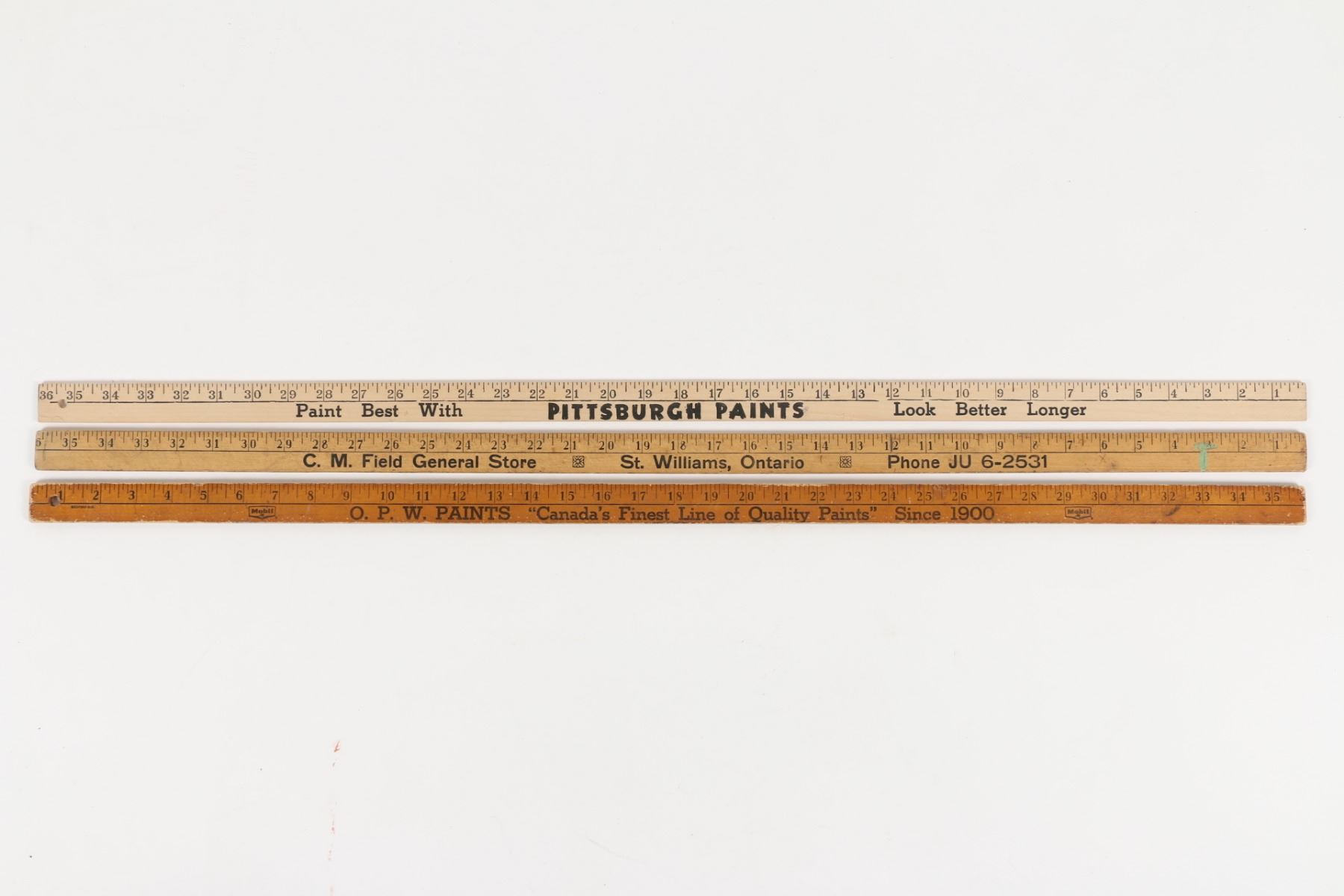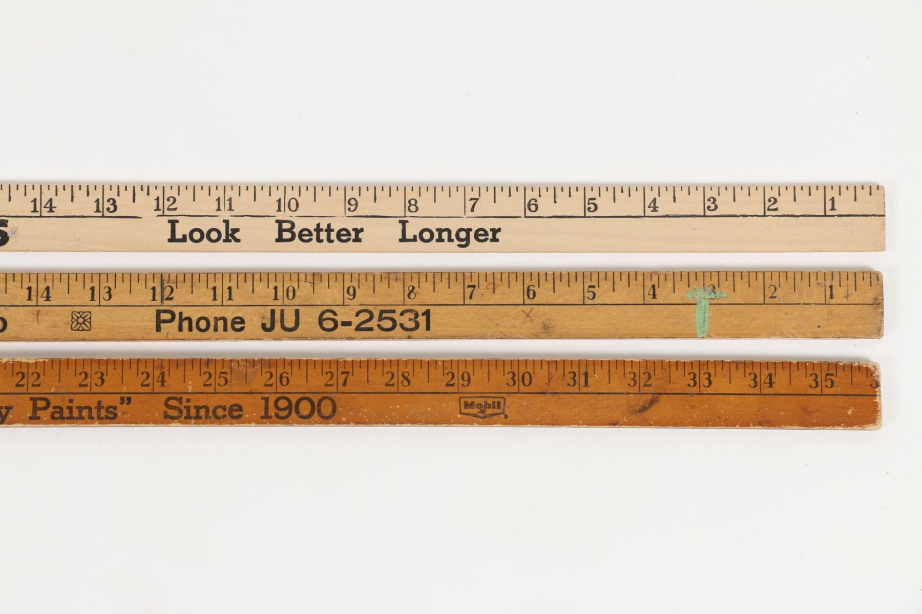 Includes three (3) yardsticks and one (1) broom holder. Various sizes. $50-100.