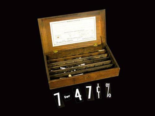 General Store Number and Letter set for display signs. Wood Box. Disc-O-Tag Co., Indianapolis, IN. 13 x 7 x 2 1/2 inches. Good Condition.