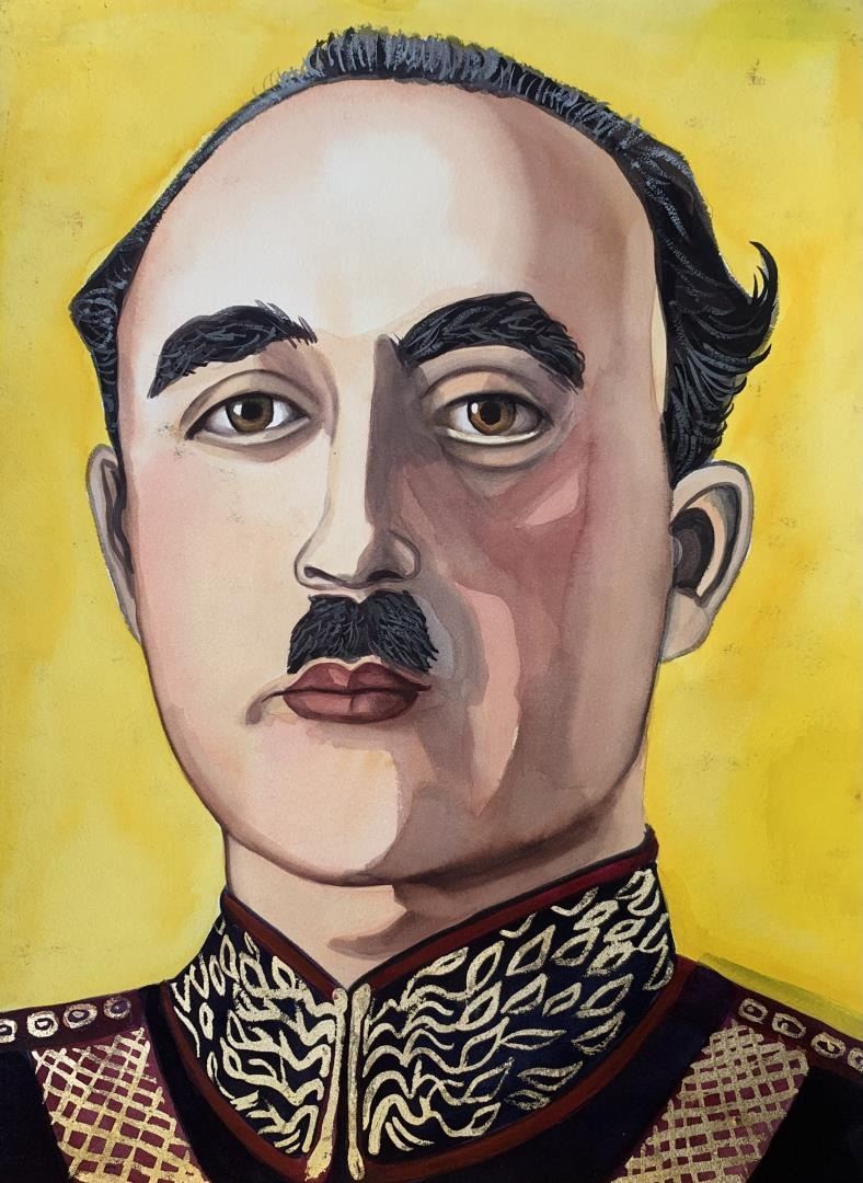 A pastel & watercolor portrait of the Fascist Dictator who ruled Spain from 1939 until his death in 1975. 24x18" on deckled fine art paper, by Anonymous