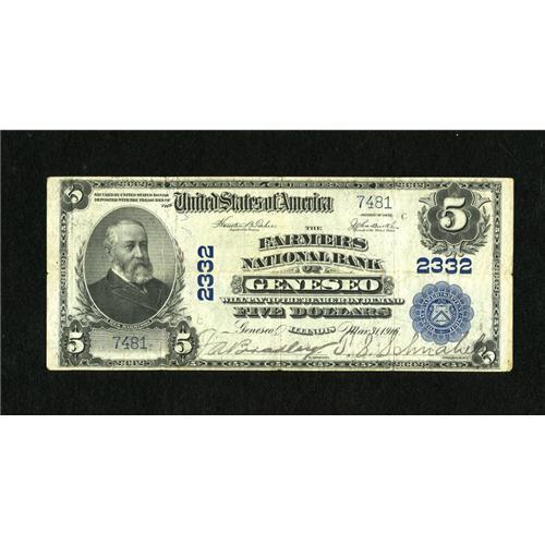 <B>Geneseo, IL</B></I> - $5 1902 Plain Back Fr. 606 <B>The Farmers NB</B></I> Ch. # 2332<BR>The number of folds is more consistent with a VF grade, though they are a bit heavier than usual. <B>Fine.</B></I><BR><I>From The Lincoln Collection</B></I><BR><BR><b>Shipping:</b> Coins & Currency (<a target="_blank" href="http://www.heritageauctions.com/common/shipping.php">view shipping information</a>)