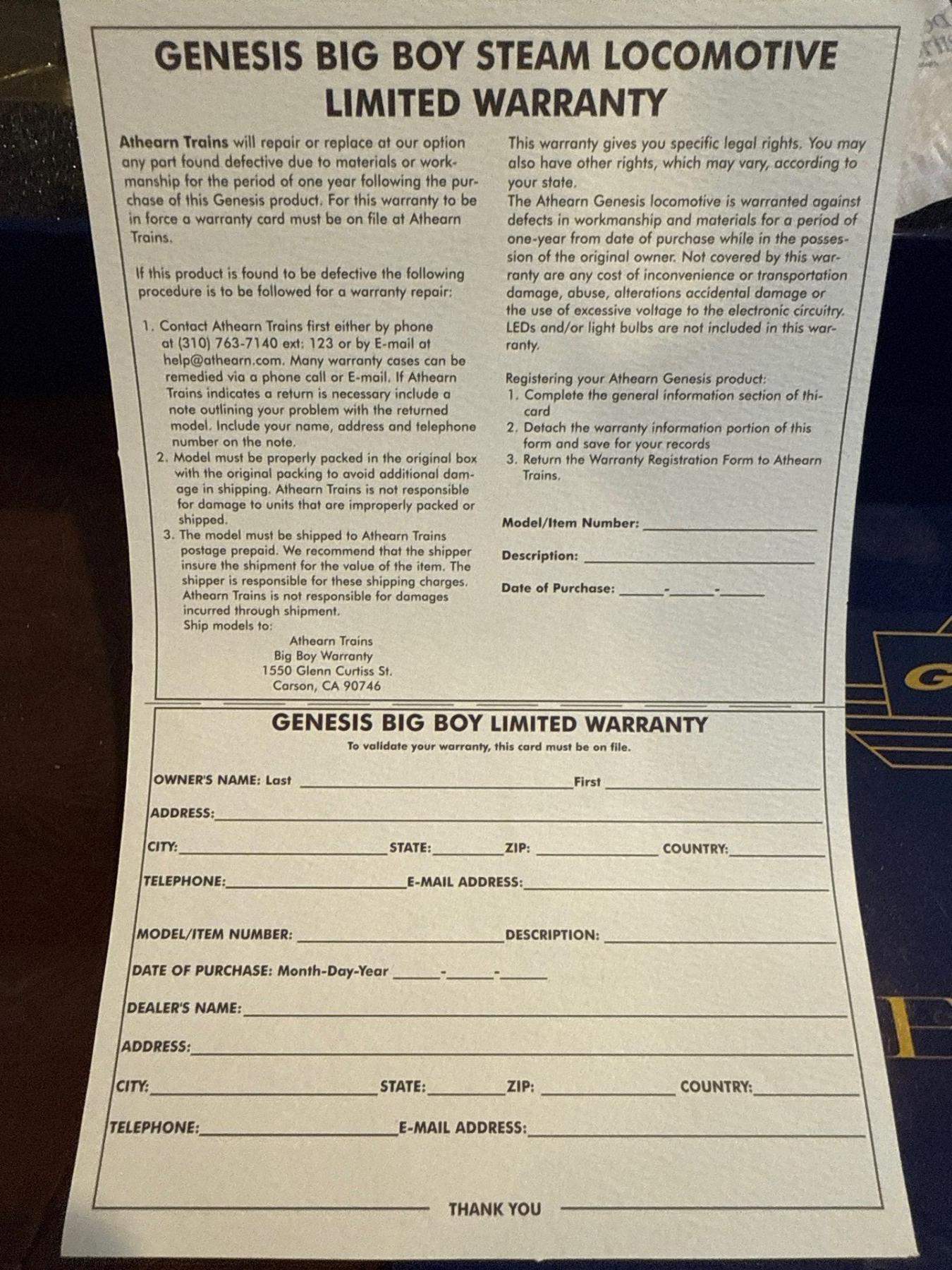 Genesis  Big Boy 4-8-8-4 Union Pacific 4009 Model Train w/ Athearn Remote