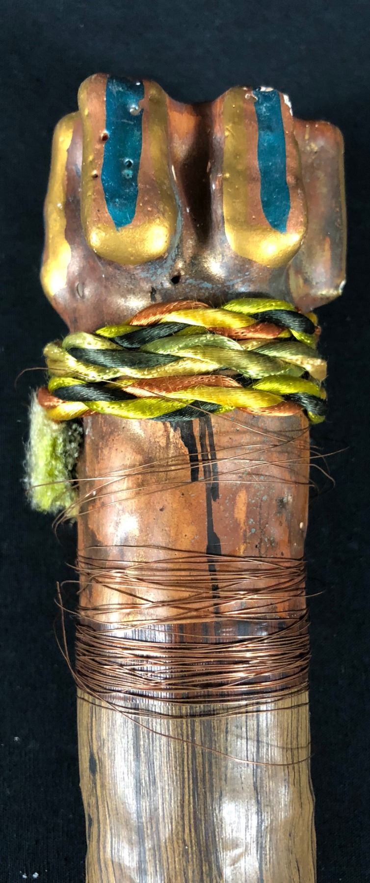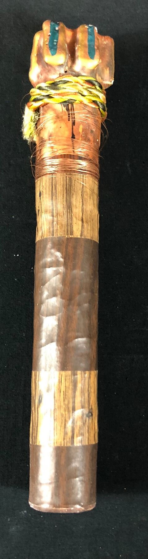 The Tribal stick is made of foam, string and copper wire and measures 12" long.