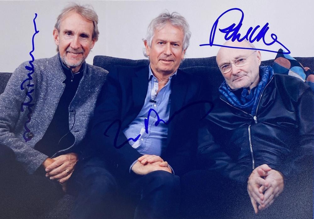 Genesis facsimile signed photo autographed by Tony Banks, Mike Rutherford and Phil Collins. 8x10 inches. This item is a reprint of an original autograph