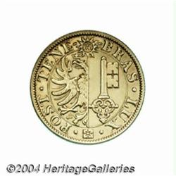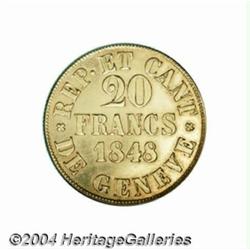 Geneva. Gold 20 francs 1848, Arms/Value, Fr-263, KM140, XF/AU.From the Morris Geiger Collection. Important notice: Heritage usually auctions material at the rate of 200-250 lots per hour. On some occasions eBay Live bid software or the Internet may not be able to keep up with the pace of the auction. We recommend placing a realistic absentee bid now as insurance to avoid disappointment. Occasionally the auctioneer may eliminate or reject an eBay Live bid, and the auctioneer may also reopen a lot after the close of the eBay live bidding (usually because we missed an audience bid), and may reject your bid even if it shows you as the winning bidder. By bidding via eBay Live, you agree that Heritage may award the lot to another bidder at its sole discretion under the circumstances described above or any other reasonable circumstances. Also please note that all Heritage lots purchased through eBay Live carry a 20% Buyer's Premium. Please make sure you read the Terms and Conditions before you bid.