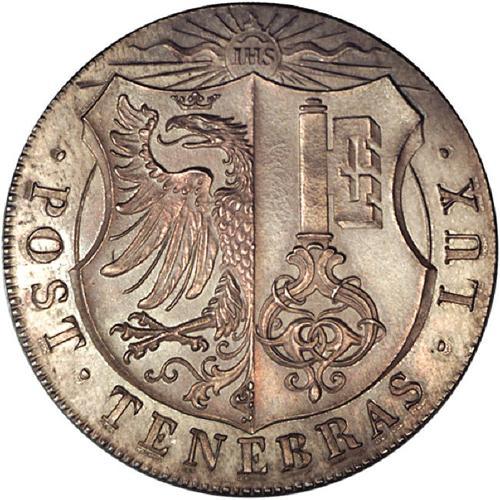 Geneva. Uniface Obverse Silver 5 Franc Pattern 1848, as Geneva. Uniface Obverse Silver 5 Franc Patte