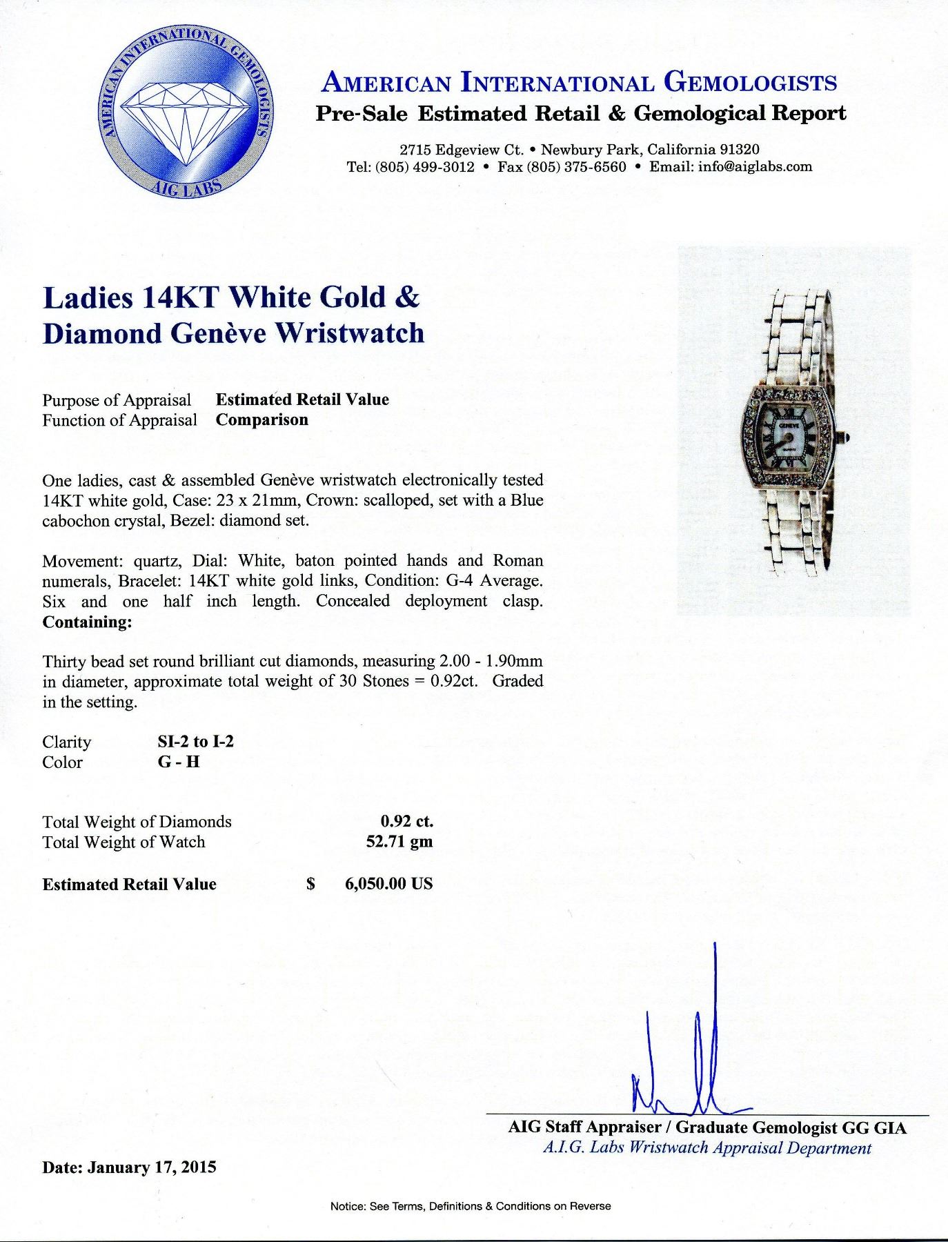 One Geneve 14KT White Gold Diamond Ladies Watch AIG Appraised.