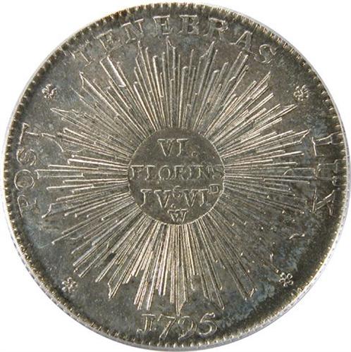 1795W 6 Florins PCGS MS-63. A well struck piece with great lustre and pale golden toning