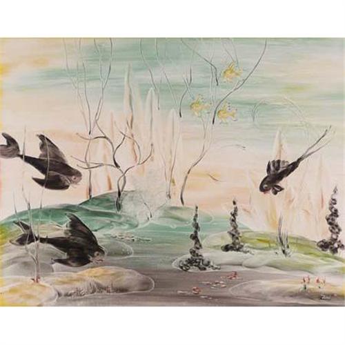 7630 Genmatucha, Oil on Board "Underwater" Signed lower right 21" x 27"