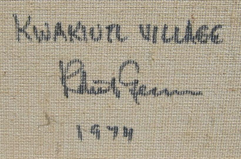 ROBERT GENN FCA (Canadian, 1936 - ) Kwakiutl Village Oil on canvas 8" x 10" (20.32 x 25.4cm.) Signed lower left; signe, titled & dated 1974 verso