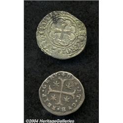 <B>Genoa</B></I> Lot of 2 coins: One Grosso 15th Century Very Fine and KM-104 1/8 Scudo 1653 Fine. 2 coins <BR><BR><B>Important notice:</B> Heritage usually auctions material at the rate of 200-250 lots per hour. On some occasions eBay Live bid software or the Internet may not be able to keep up with the pace of the auction. We recommend placing a realistic absentee bid now as insurance to avoid disappointment. Occasionally the auctioneer may eliminate or reject an eBay Live bid, and the auctioneer may also reopen a lot after the close of the eBay live bidding (usually because we missed an audience bid), and may reject your bid even if it shows you as the winning bidder. By bidding via eBay Live, you agree that Heritage may award the lot to another bidder at its sole discretion under the circumstances described above or any other reasonable circumstances. Since eBay bids are not shown to us until we open the lot on the floor, we treat those bids just like floor bids. In most cases the floor responds before the eBay bid is presented to us, due to Internet lag time, so for consistency we have made it a policy that floor bids are always considered first over tie eBay live bids. Also please note that all Heritage lots purchased through eBay Live carry a 20% Buyer's Premium. Please make sure you read the Terms and Conditions before you bid.