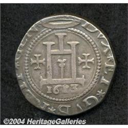 <B>Genoa</B></I> KM-25 One Scudo 1613-MC Severely cut down to the size of a 1/2 Scudo. Very Fine. <BR><BR><B>Important notice:</B> Heritage usually auctions material at the rate of 200-250 lots per hour. On some occasions eBay Live bid software or the Internet may not be able to keep up with the pace of the auction. We recommend placing a realistic absentee bid now as insurance to avoid disappointment. Occasionally the auctioneer may eliminate or reject an eBay Live bid, and the auctioneer may also reopen a lot after the close of the eBay live bidding (usually because we missed an audience bid), and may reject your bid even if it shows you as the winning bidder. By bidding via eBay Live, you agree that Heritage may award the lot to another bidder at its sole discretion under the circumstances described above or any other reasonable circumstances. Since eBay bids are not shown to us until we open the lot on the floor, we treat those bids just like floor bids. In most cases the floor responds before the eBay bid is presented to us, due to Internet lag time, so for consistency we have made it a policy that floor bids are always considered first over tie eBay live bids. Also please note that all Heritage lots purchased through eBay Live carry a 20% Buyer's Premium. Please make sure you read the Terms and Conditions before you bid.