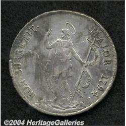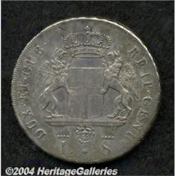 <B>Genoa</B></I> KM-249a 8 Lire 1794 Very Fine. <BR><BR><B>Important notice:</B> Heritage usually auctions material at the rate of 200-250 lots per hour. On some occasions eBay Live bid software or the Internet may not be able to keep up with the pace of the auction. We recommend placing a realistic absentee bid now as insurance to avoid disappointment. Occasionally the auctioneer may eliminate or reject an eBay Live bid, and the auctioneer may also reopen a lot after the close of the eBay live bidding (usually because we missed an audience bid), and may reject your bid even if it shows you as the winning bidder. By bidding via eBay Live, you agree that Heritage may award the lot to another bidder at its sole discretion under the circumstances described above or any other reasonable circumstances. Since eBay bids are not shown to us until we open the lot on the floor, we treat those bids just like floor bids. In most cases the floor responds before the eBay bid is presented to us, due to Internet lag time, so for consistency we have made it a policy that floor bids are always considered first over tie eBay live bids. Also please note that all Heritage lots purchased through eBay Live carry a 20% Buyer's Premium. Please make sure you read the Terms and Conditions before you bid.