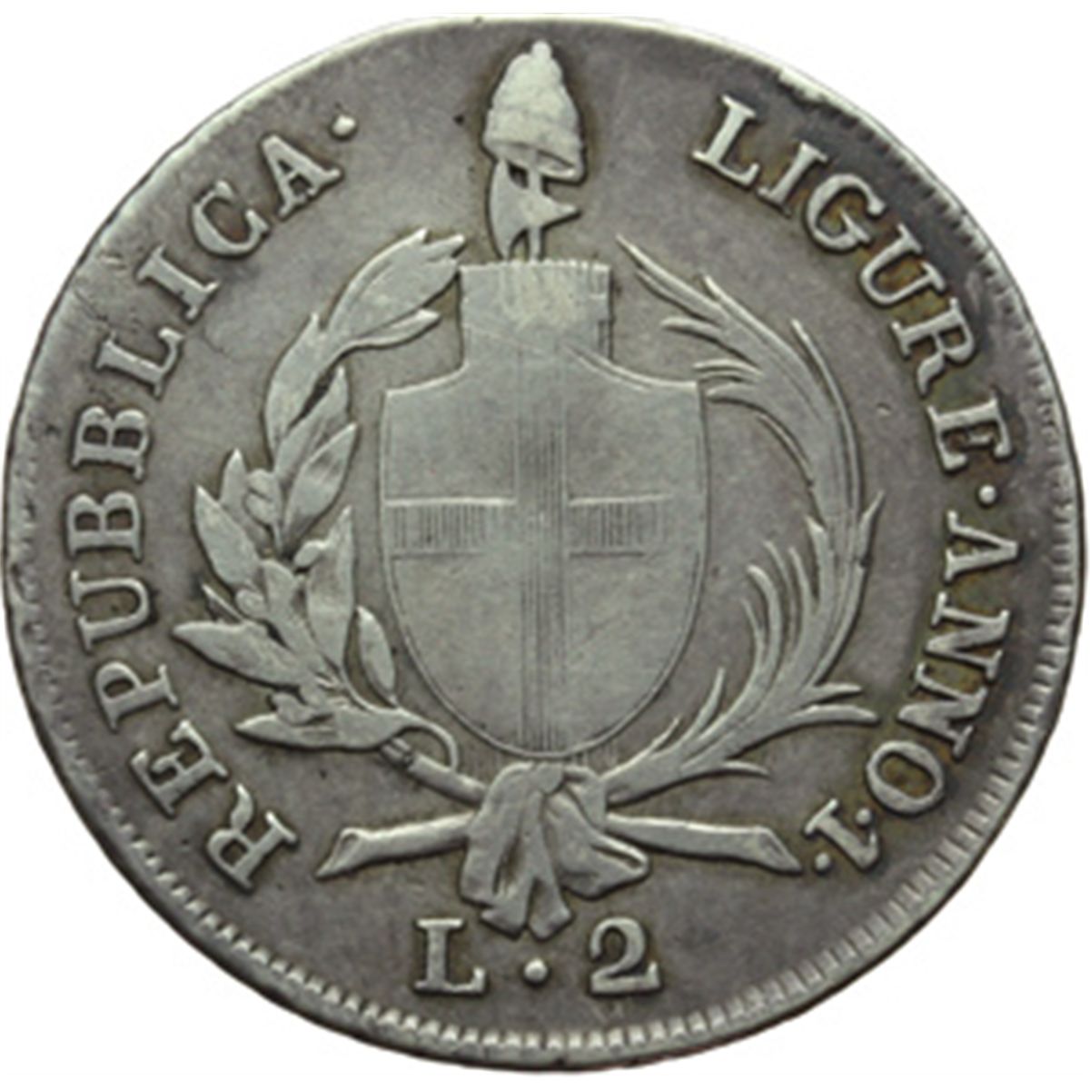 Monete e Medaglie di Zecche Italiane. Genova. Repubblica Ligure (1798-1805). 2 lire 1798. MIR 381. AG. g. 8.19 RR. qBB/BB.