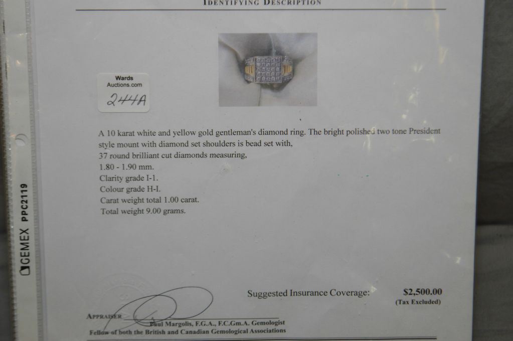Gent's 10kt white and yellow gold and diamond ring set with 1.00ct of brilliant diamonds. Retail replacement value $2,500.00
