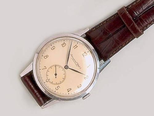 Steel case, cream colour face with Arabic numerals and subsidiary seconds, C 62 Movement in working condition, case, face and movement are marked International Watch Co. Schaffhausen, Switzerland, circa 1940, leather strap, case number: 1118079, movement