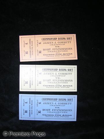 Gentleman Jim (1942) - From the classic film starring Errol Flynn, Alexis Smith, Jack Carson and Alan Hale are three original screen used prop tickets for a championship boxing bout between James J. Corbett and Robert Fitzsimmons. 5" x 2" each