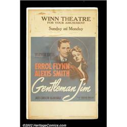 Gentleman Jim (Warner Brothers, 1942). Window Card (14"X22") Errol Flynn stars in this biopic of the life of pugilist James Corbett. Reportedly, this was Flynn's favorite role of all his films! Very Fine. Important notice: We expect to be auctioning lots at the rate of 200-250 per hour. Sometimes eBay Premier live bid software cannot keep up with that pace, so we strongly recommend that you place a realistic proxy bid now as insurance to avoid disappointment. Also please note that all Heritage/CAA lots purchased through eBay Premier carry a 20% Buyer's Premium.
