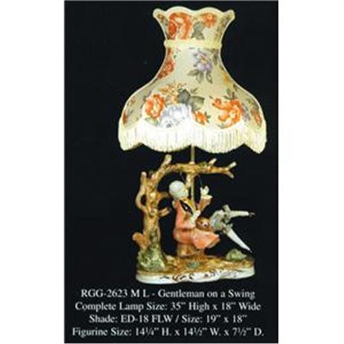 Capodimonte Porcelain "Gentle on Swing" lamp with shade Satisfaction Guaranteed All our capodimonte pieces are 100% authentic, made with the best craftmanship in Italy. Capodimonte is more than a century Italian style of the finest porcelain once reserved for kings and queens. The style became popular when the royal family in Italy fell in love with the beauty of Capodimonte arts. The selection you see is made by artisans, according to the same tradition dating back to the 18th Century.<BR>Free Shipping in the continental US