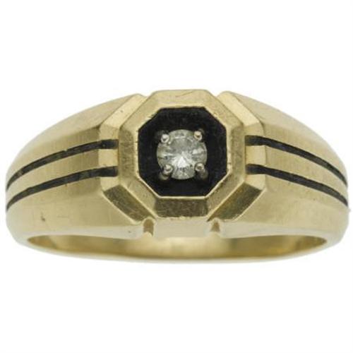 <B>Gentleman's Diamond, Gold Ring</B></I><BR><BR>The 14k yellow gold ring features a full-cut diamond weighing approximately 0.17 carat, set atop an anodized background, resting within an octagon-shaped frame. Gross weight 7.10 grams.<BR>Note: Size 10-1/4 (sizeable)<BR><BR> <B>Condition Report:</B> Good condition. The gold is scratched, and can easily be buffed out.<BR><BR><b>Shipping:</b> Miscellaneous Collectibles, Smal (<a target="_blank" href="http://www.heritageauctions.com/common/shipping.php">view shipping information</a>)