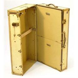 Gentlemans pig skin travelling trunk with a fitted interior enclosing cupboard space and hangers