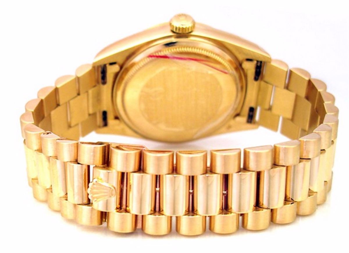 Gents Rolex 18K Yellow Gold Oyster Perpetual Daydate. Champagne Dial. 18K Fluted Bezel. 18K Yellow Gold President Band. Style 18038.#32839