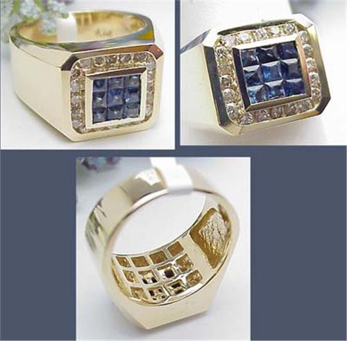 Gents invisible set 1.05ctw sapphire and 0.70ctw diamond ring 17.2gr yellow gold finger size 10 1/4