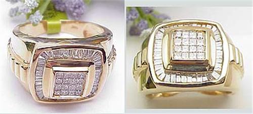 Gents invisible set diamond ring, 1.10ctw in 14kt yellow gold. 14.5gr