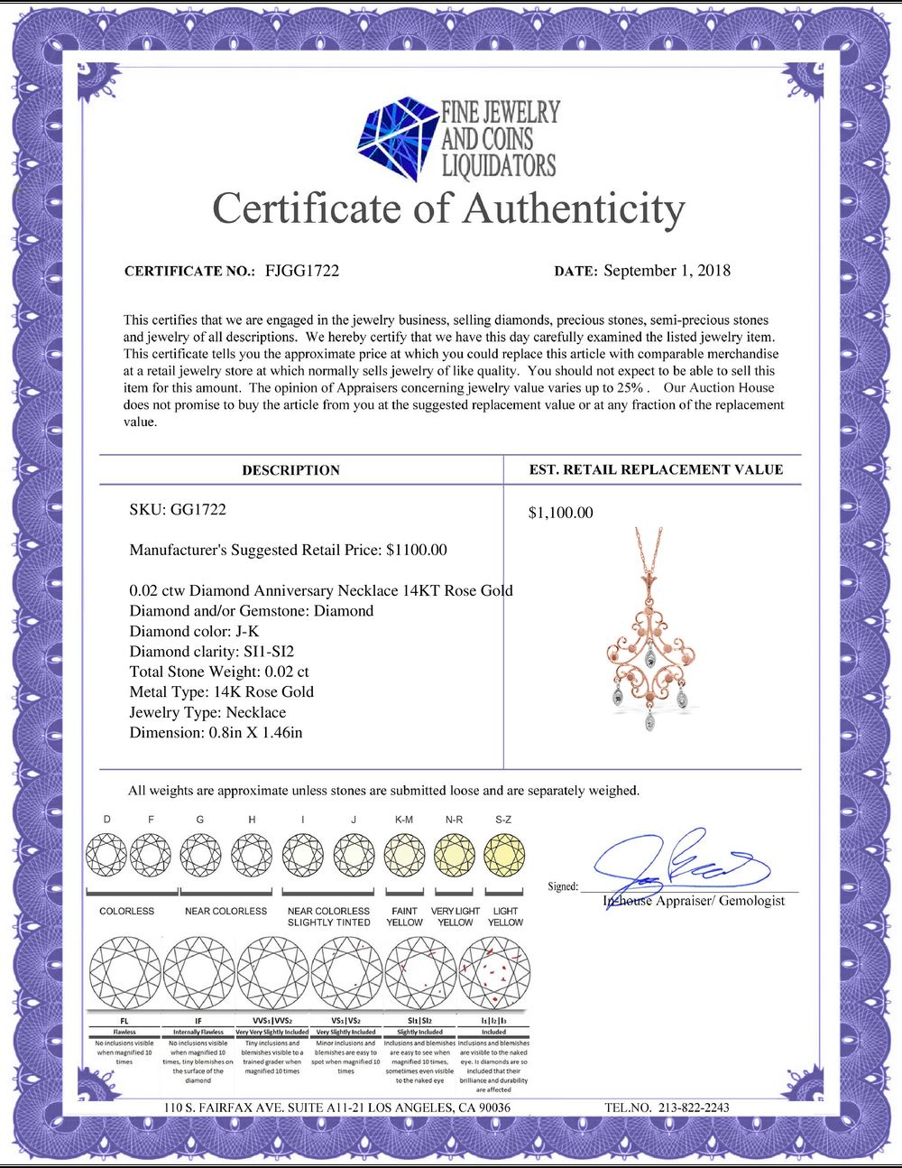 REF-36N5R - SKU: GG1722 ---- Genuine 0.02 ctw Diamond Anniversary Necklace 14KT White Gold